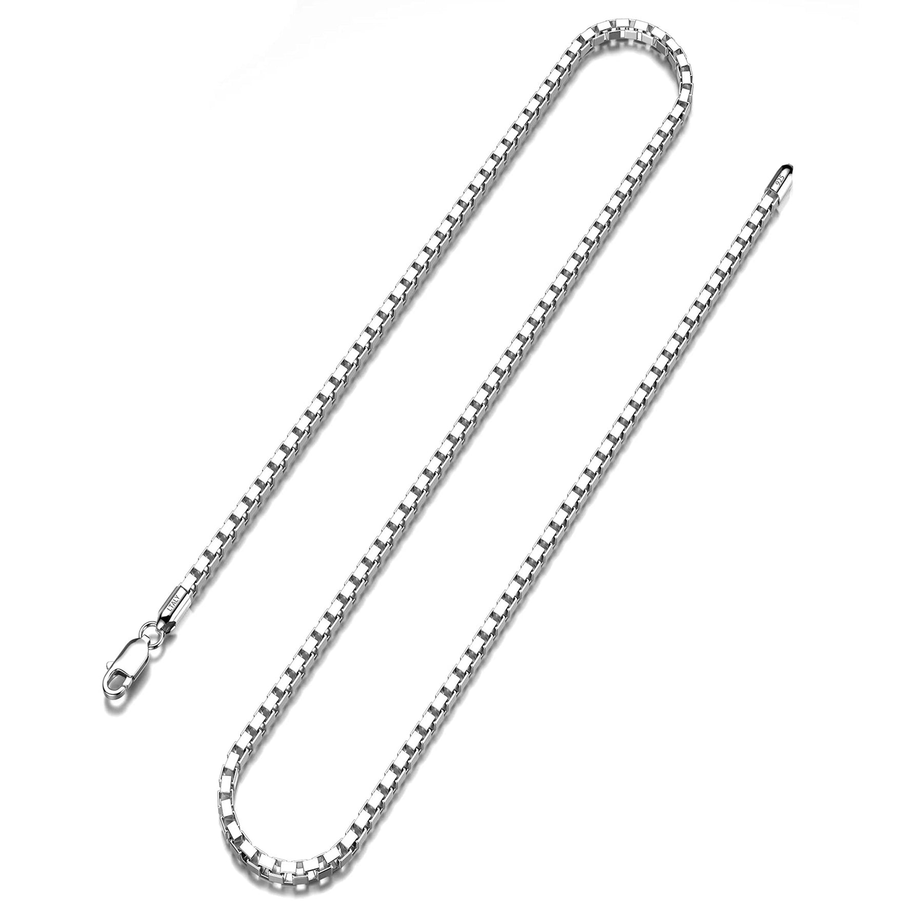 1、【Stylish Men's Favorites】- Silver box chain is one of the most popular fashion chain necklaces. mens chain features a sleek, minimalist design that will complement any of your outfits. When you wear these sparkling mens necklace, it will make you the center of attention for any occasion.2、【Safe Comfortable】- The square Box chain comes with a 925 sterling silver lobster clasp. Necklace for men are lead and nickel free, so you can wear them with confidence for sensitive skin. The silver chain for men is keep its original sparkle even after prolonged wear.3、【Italian Raftsmanship】- Necklaces for women are cut with exquisite Italian craftsmanship to ensure that the chain necklace are more shiny and precious, with flawless workmanship.4、【Perfect Gift】- Chains for men in a beautiful gift box. This box necklace for women men is a great gift for husband, wife, son, mom, dad, brother, best friend.5、【Excellent Service】- We promise to provide a lifetime warranty service for the necklace for men. If you have any problem with your box chains, we will give you the perfect answer and solution within 24 hours.