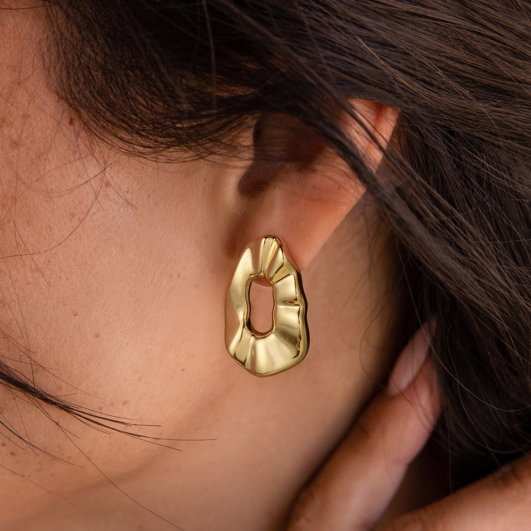 Charming goldenen  earrings: this pair of goldenen  earrings is plated with 14K golden, and the irregular wavy pattern gives people a sense of high class. This pendant earring is suitable for any outfit.