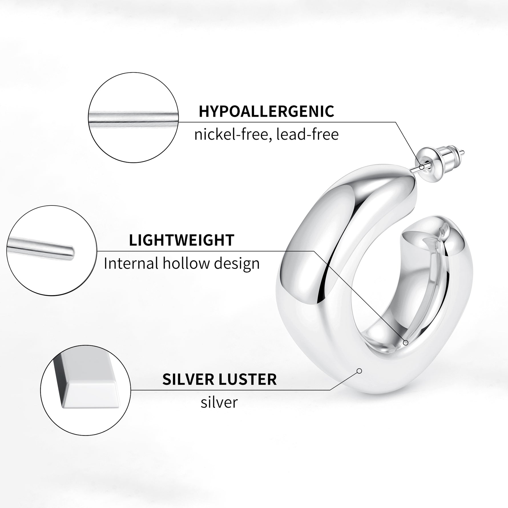 Chunky golden Earrings for Women, golden and silver Hoop Earrings for Women Trendy golden Earrings for Women Hypoallergenic Earrings golden Chunky Earrings for Women golden Jewelry for Women