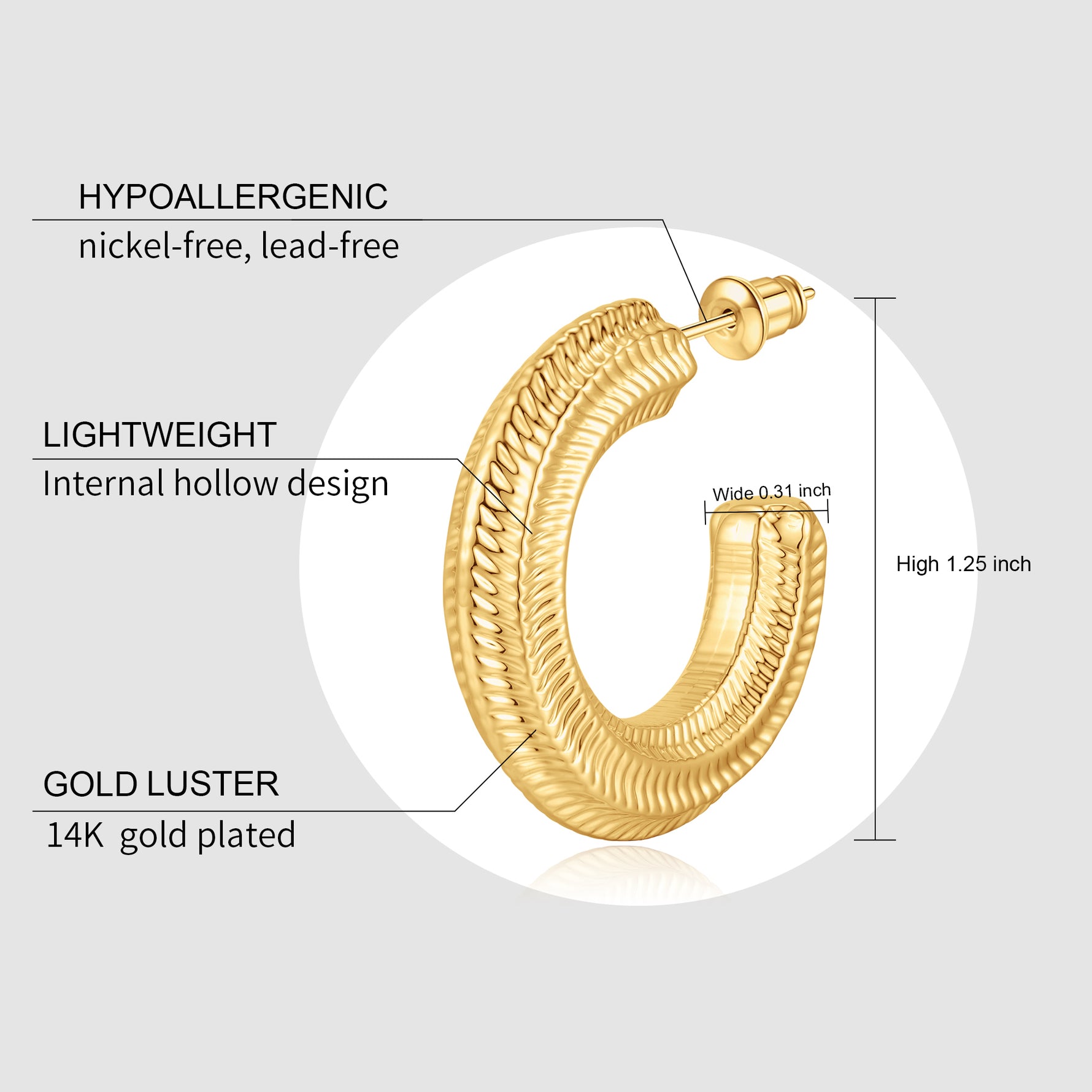 [Hypoallergenic, light and comfortable] Light goldenen earrings are made of copper, plated with 14k golden, hypoallergenic, nickel-free and lead-free. Thick goldenen earrings are very friendly to women with sensitive skin. goldenen ring earrings will not lose their luster, and you can wear them every day.
