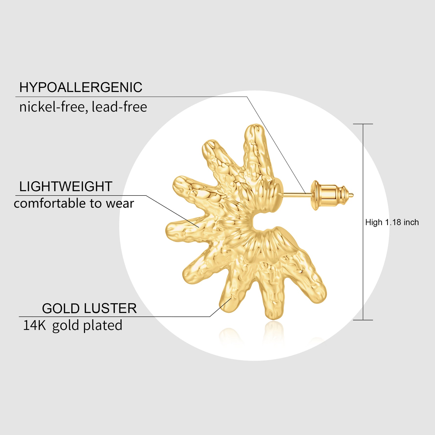 [Hypoallergenic, light and comfortable] Light goldenen earrings are made of copper, plated with 14k golden, hypoallergenic, nickel-free and lead-free. Thick goldenen earrings are very friendly to women with sensitive skin. goldenen ring earrings will not lose their luster, and you can wear them every day.