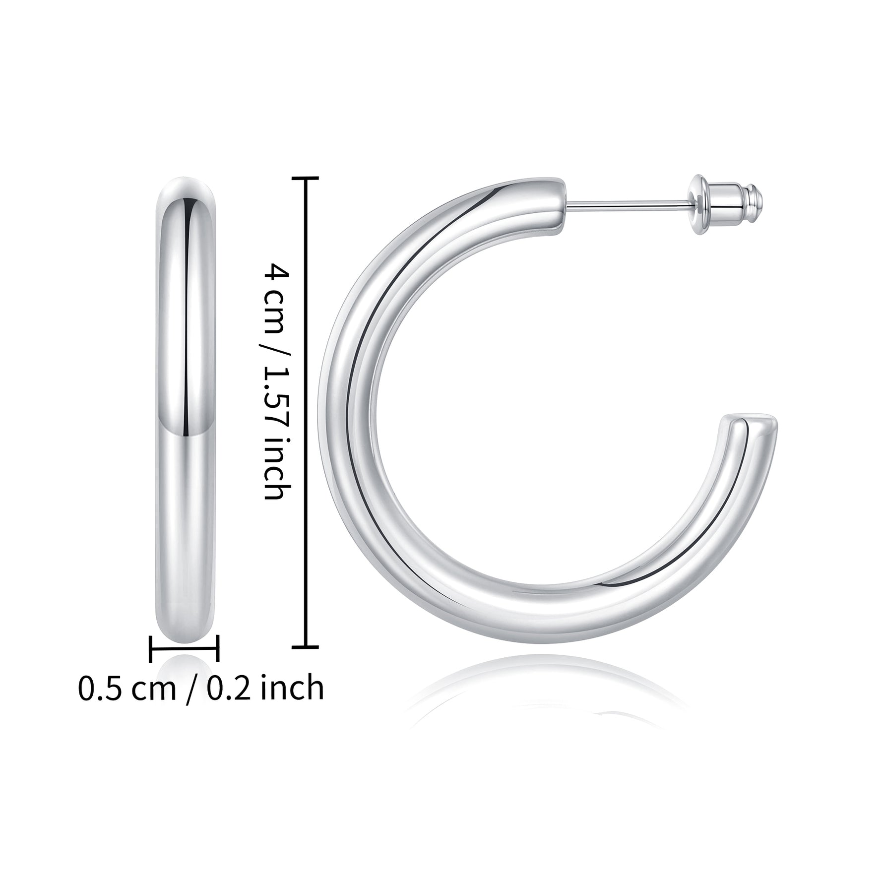 Chunky golden Hoop Earrings Set 14K golden and silver Plated Open Hoops Earrings Lightweight Small golden Hoop Earrings 20/30/40/50mm