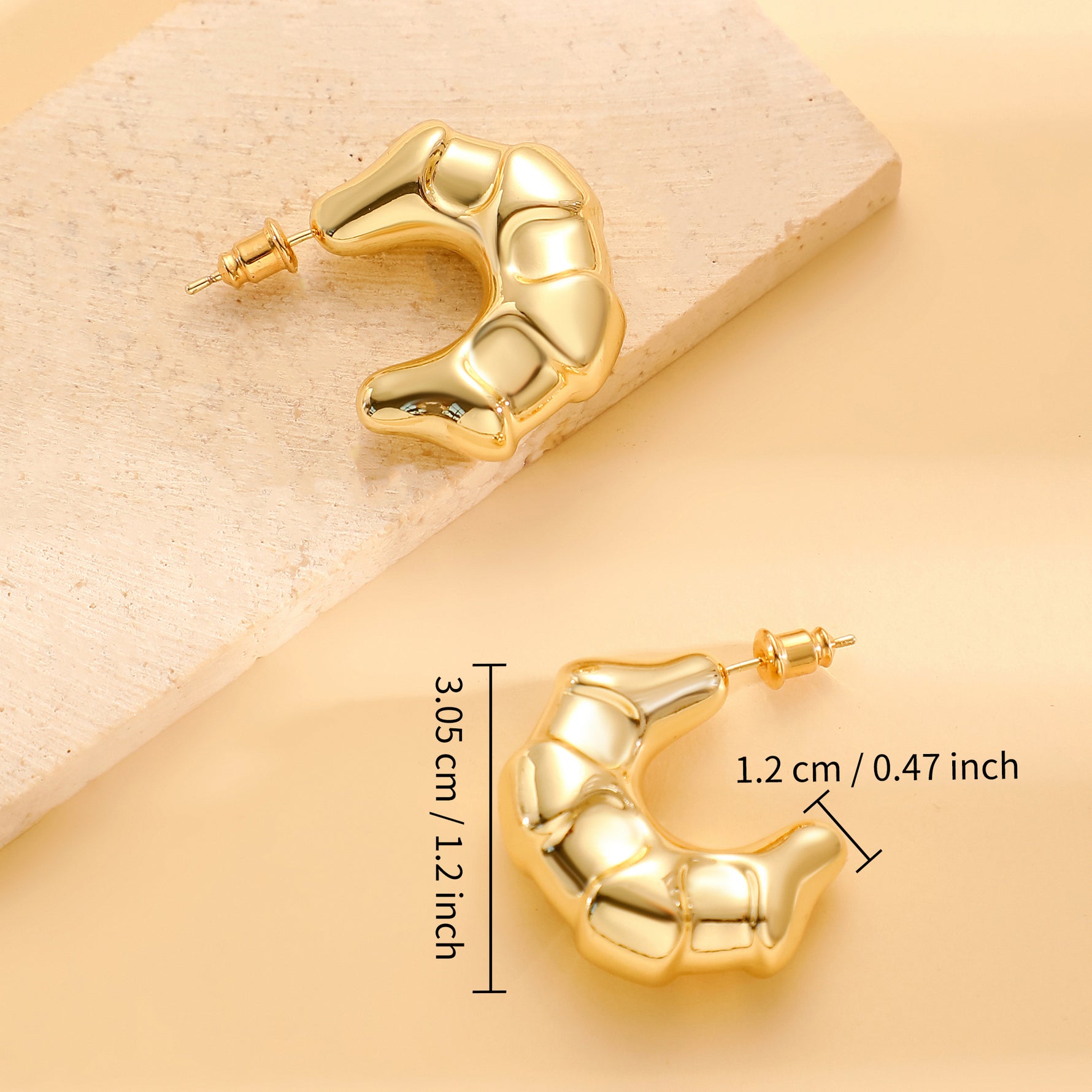 Bold golden hoop earrings: Our exquisite collection of bold golden earrings elevates your fashion sense, crafted with meticulous care to exude modern and sophisticated charm. These earrings feature sleek lines and avant-garde designs, adding a touch of elegance to any outfit. Quality materials: Our women's bold golden earrings are made from premium materials, embodying the epitome of luxury and durability. The smooth surface polishing ensures a perfect finish, while the hypoallergenic properties comfort without compromising style. Rest assured, our golden hoop earrings maintain their lustrous color and integrity over time, ensuring lasting elegance. Lightweight and comfortable: Our bold golden earrings are designed for all-day wear, allowing you to enjoy unmatched comfort. These bold golden earrings elegantly adorn your ears, letting you breeze through your day ease and grace, and bid farewell to discomfort. Suitable for any occasion: From casual outings to formal events, our golden bold hoop earrings are the epitome of. They transition effortlessly from day to night, easily pairing with any outfit to add a touch of flair to your look. After-sales service: Our outstanding after-sales service you peace of mind. If you have any questions about our products, our professional team will promptly assist you, ensuring your utmost satisfaction. Contact us at any time, we will respond within 24 hours, reaffirming our commitment to your satisfaction and our brand's integrity.