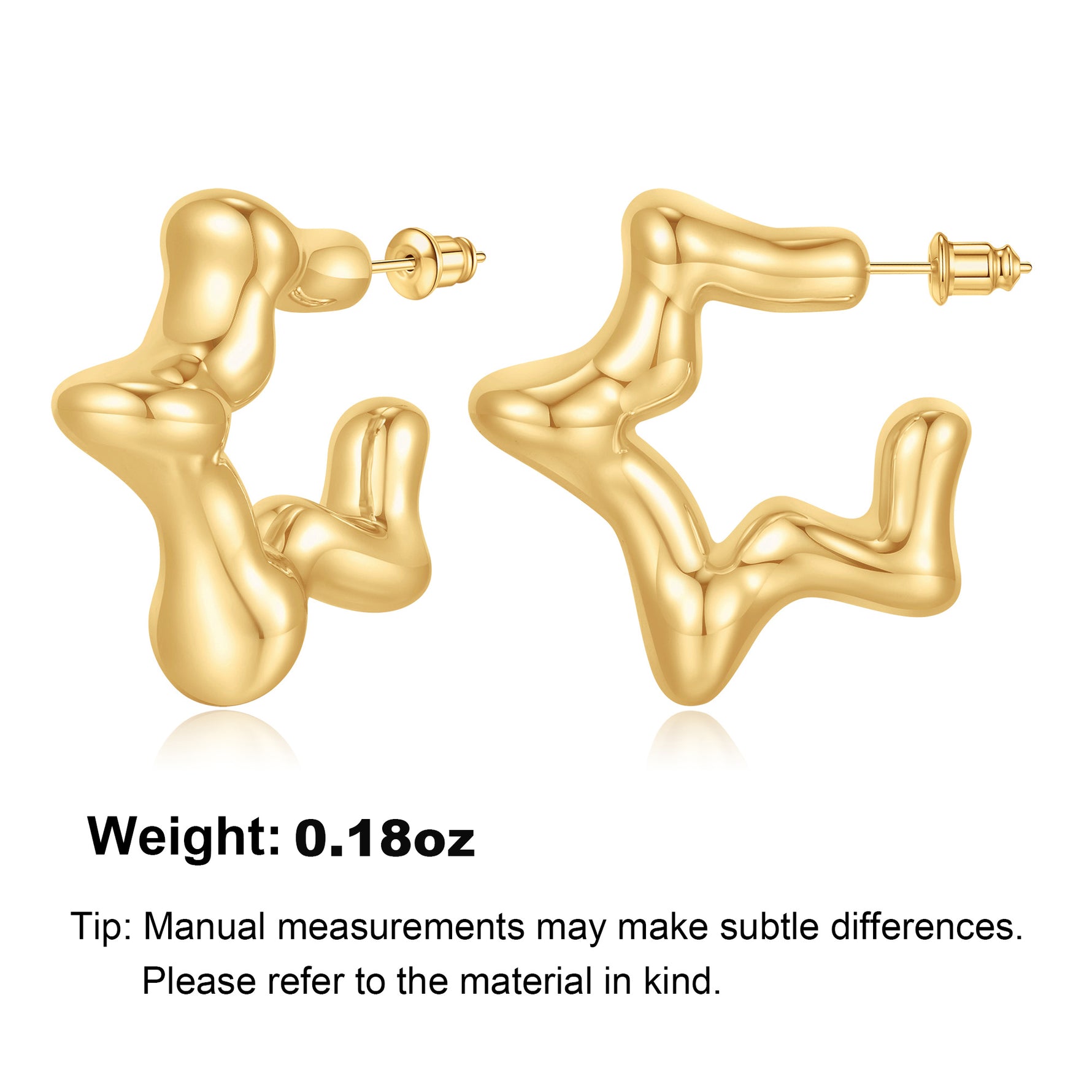 Thick star ring earrings: This thick goldenen  hoop earring combines shiny luster with thick appearance, giving people a unique aesthetic feeling. The three-dimensional hollow star ring design keeps the heavy feeling of earrings and brings you a light wearing experience.