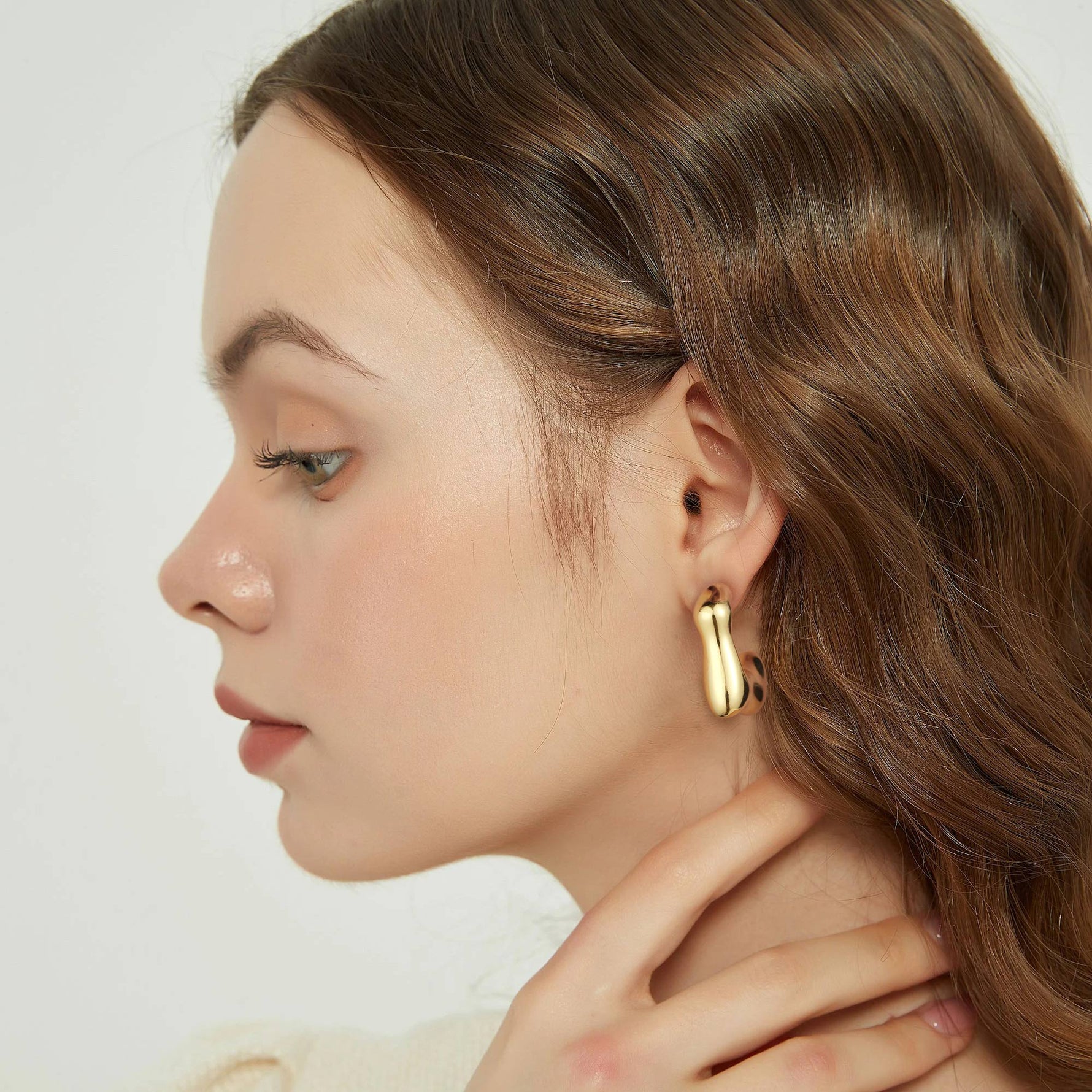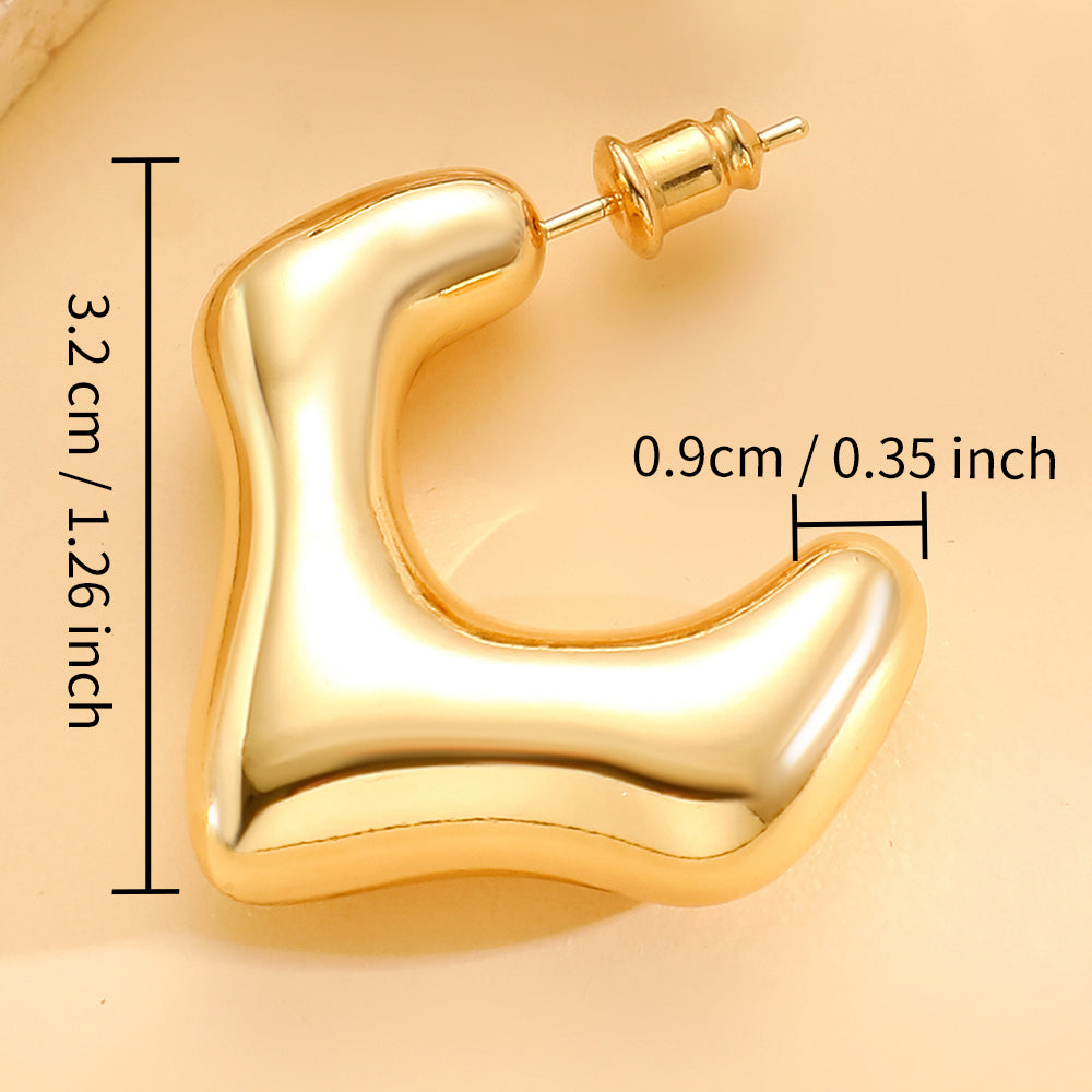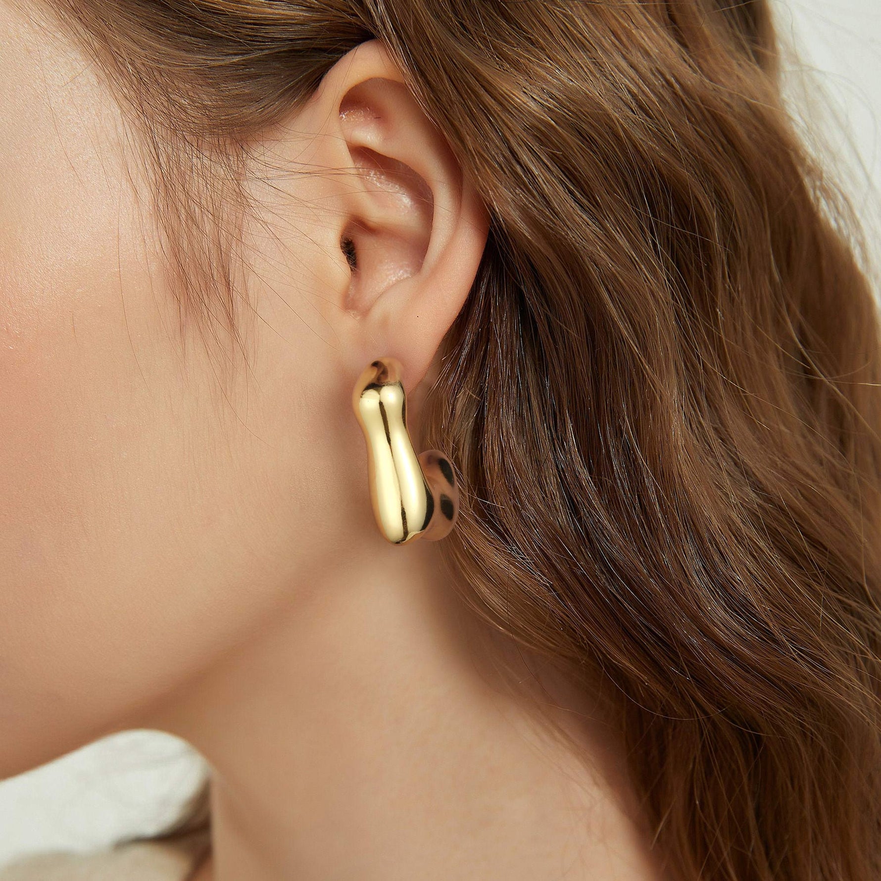 Fashionable women's golden earrings 14K golden plated low allergy thick earrings women's fashion accessories Valentine's Day music festival holiday gifts