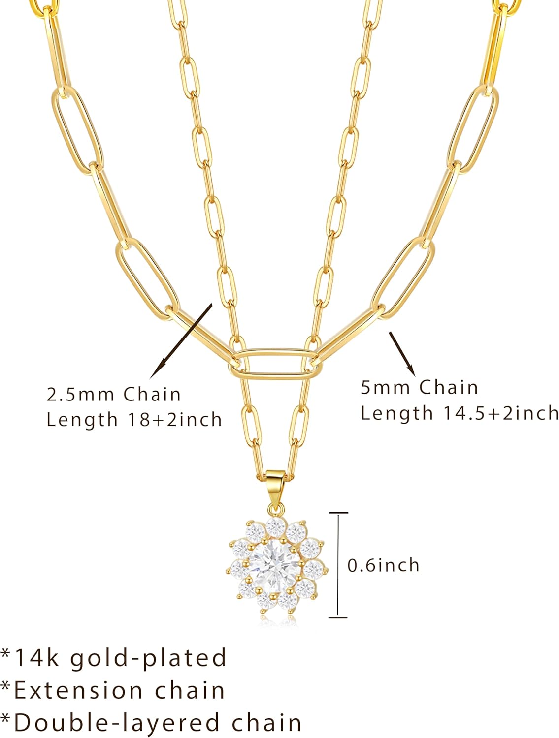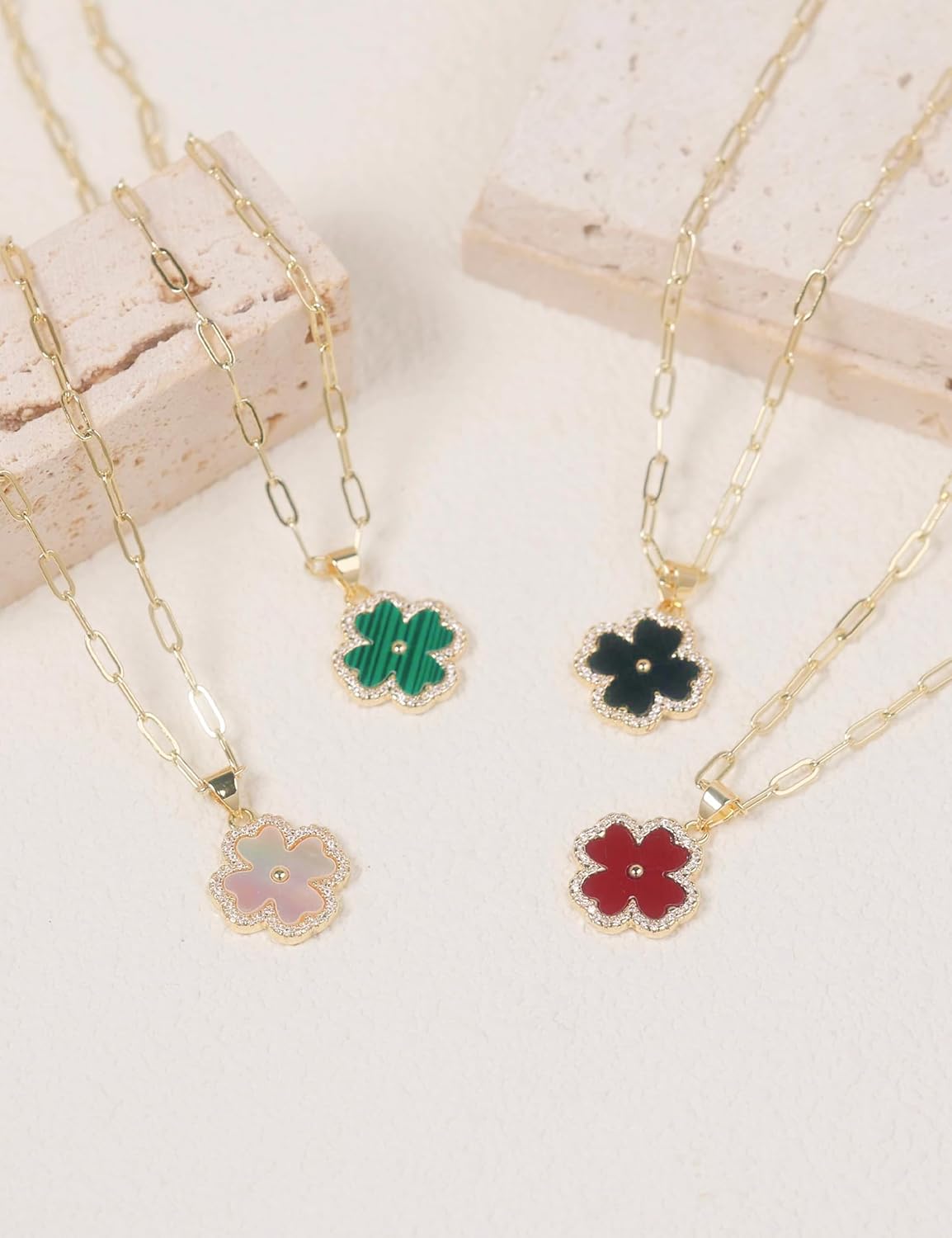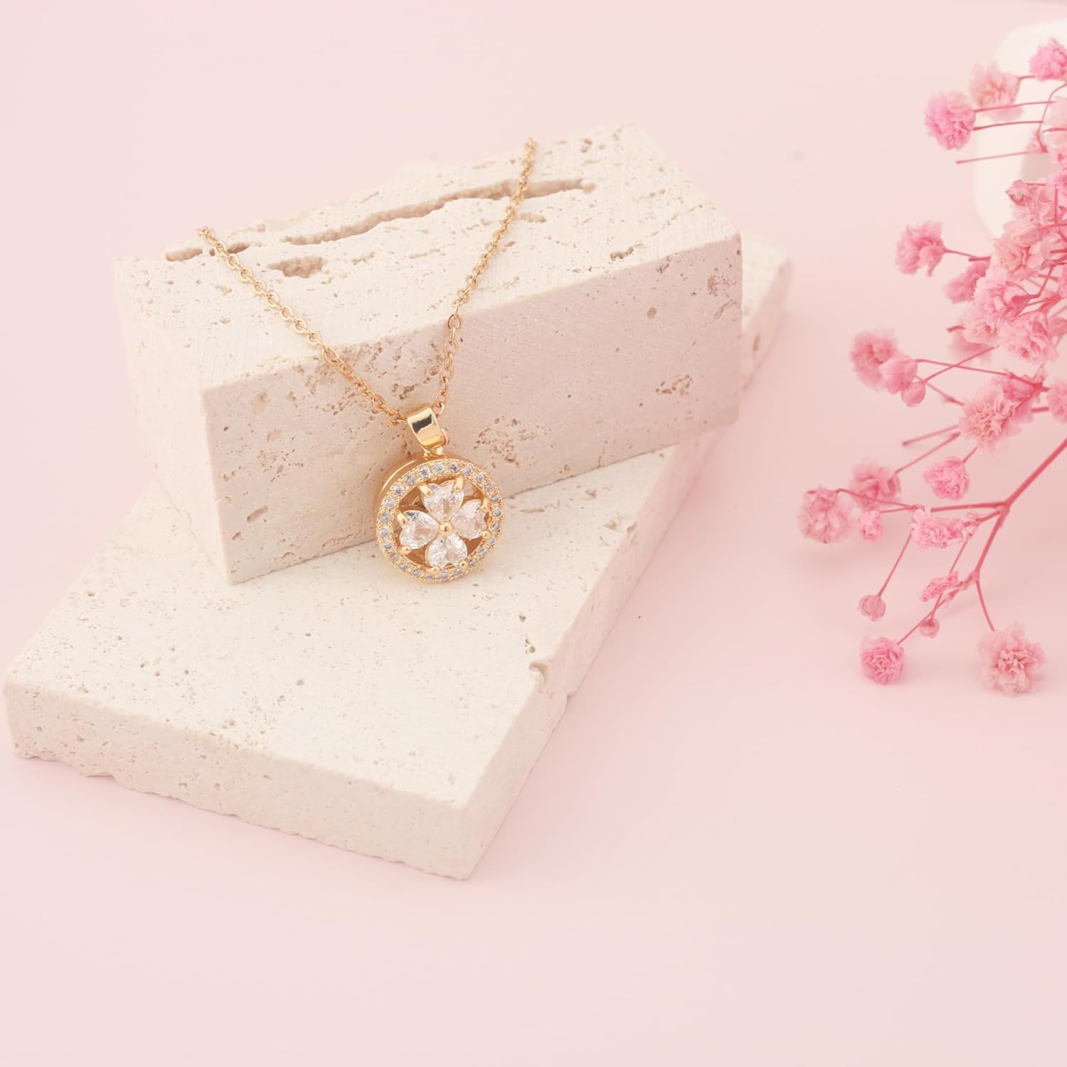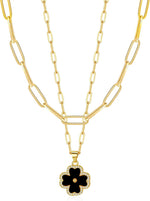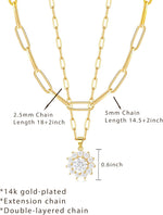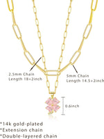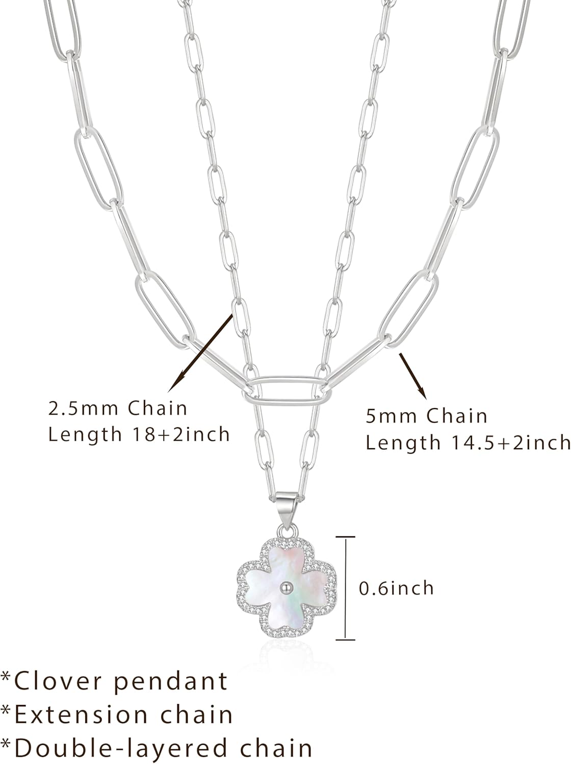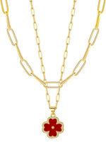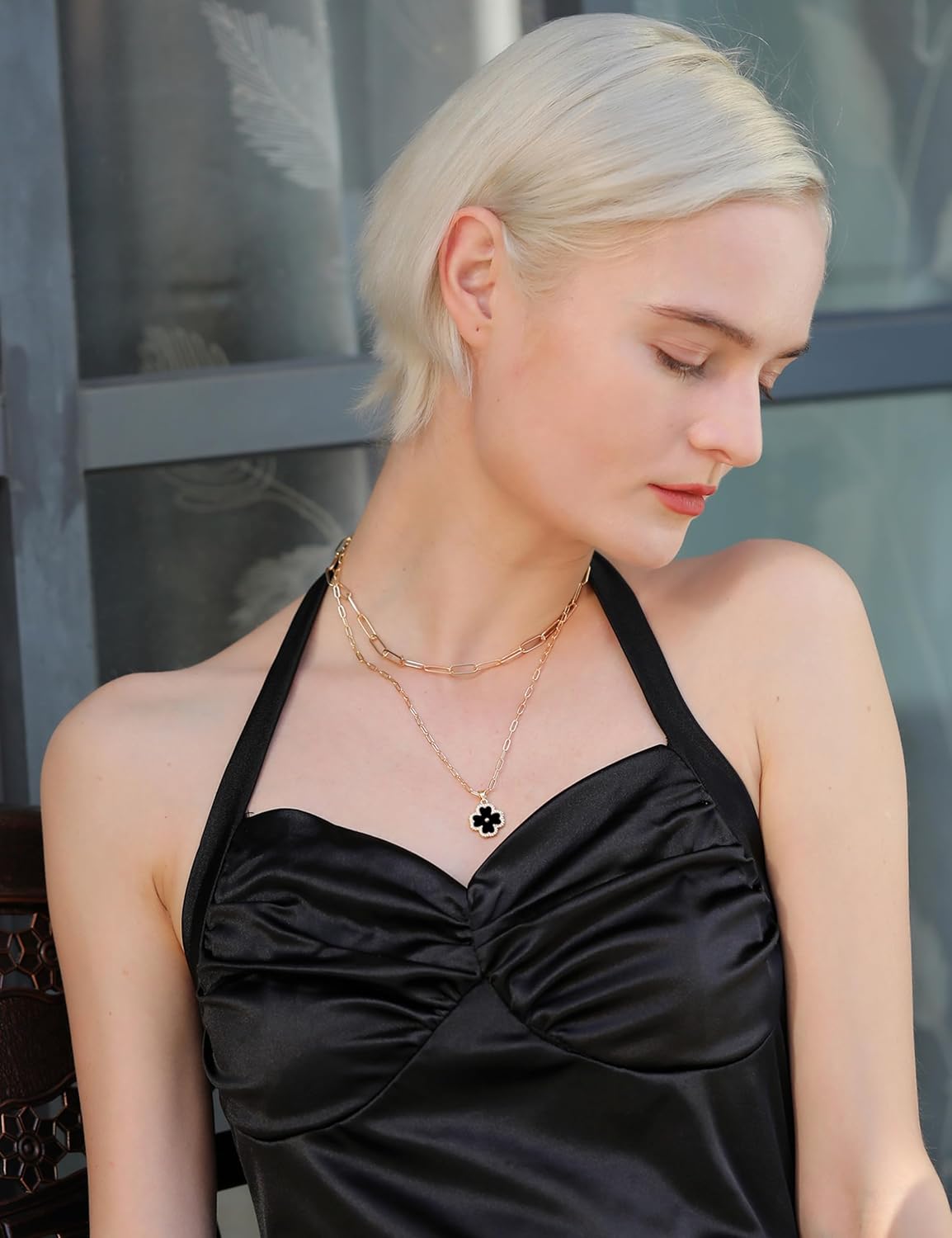 Four Leaf Clover Pendant Necklace Double Layer Chain 14K Gold Plated Birthday Valentine's day Jewelry Gift for Women Wife