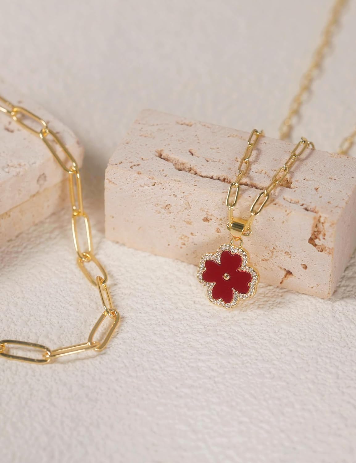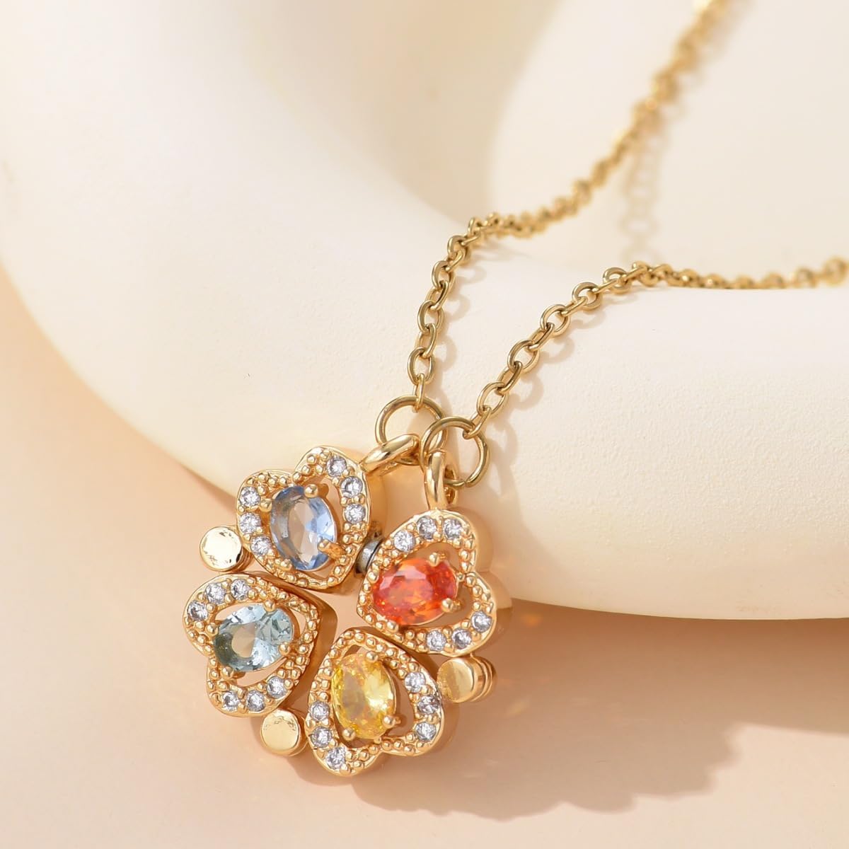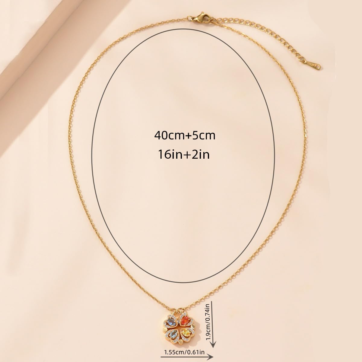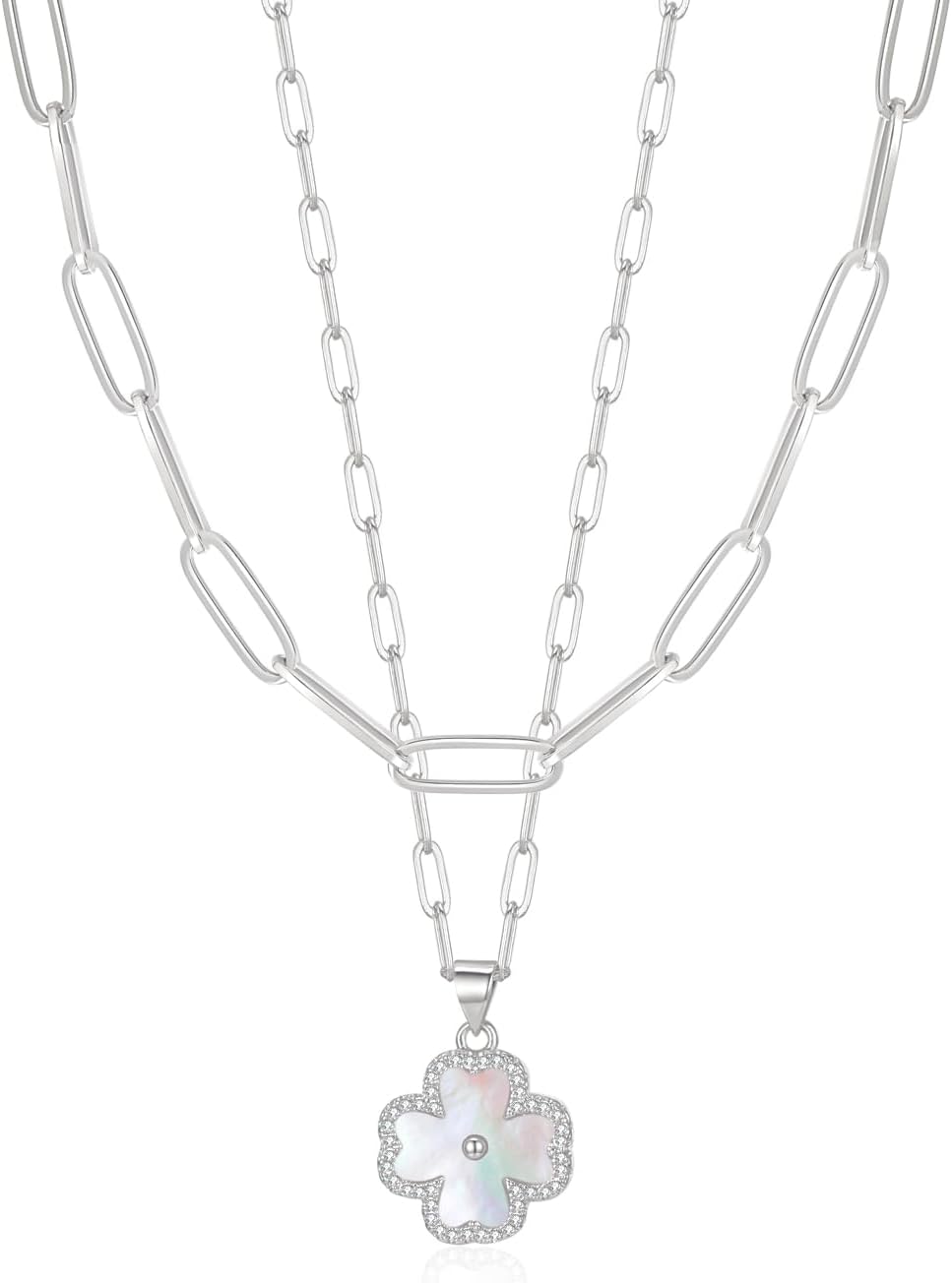 Four Leaf Clover Pendant Necklace Double Layer Chain 14K Gold Plated Birthday Valentine's day Jewelry Gift for Women Wife