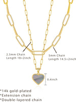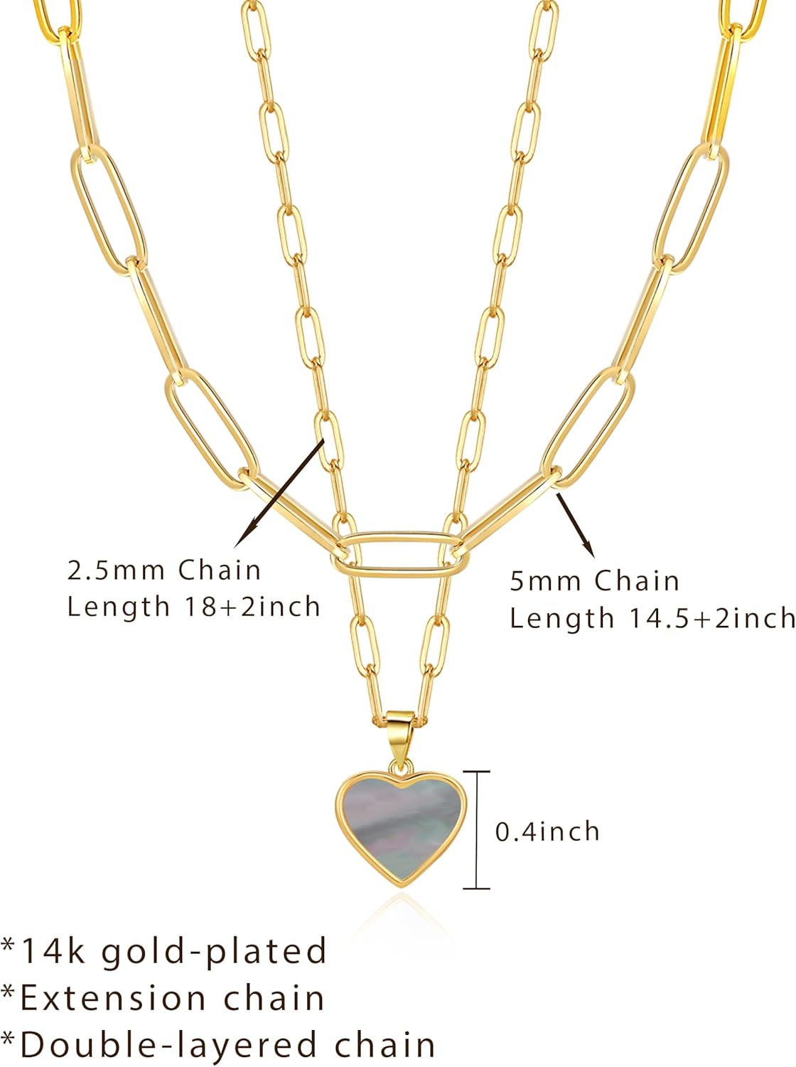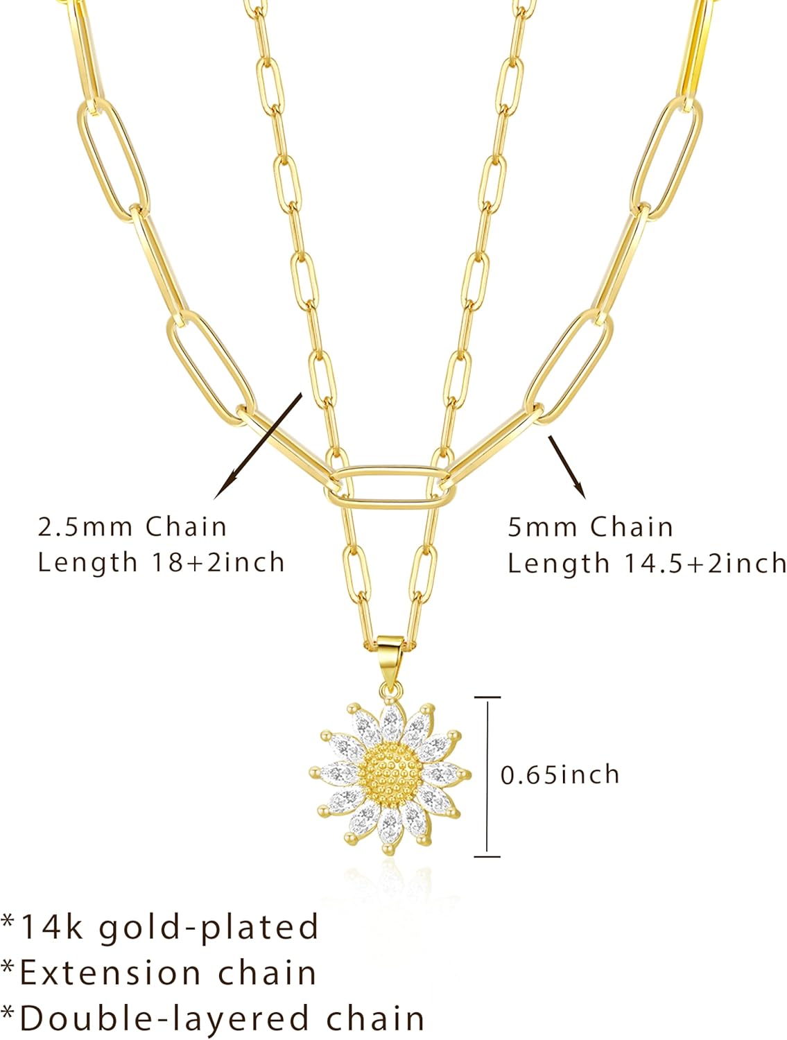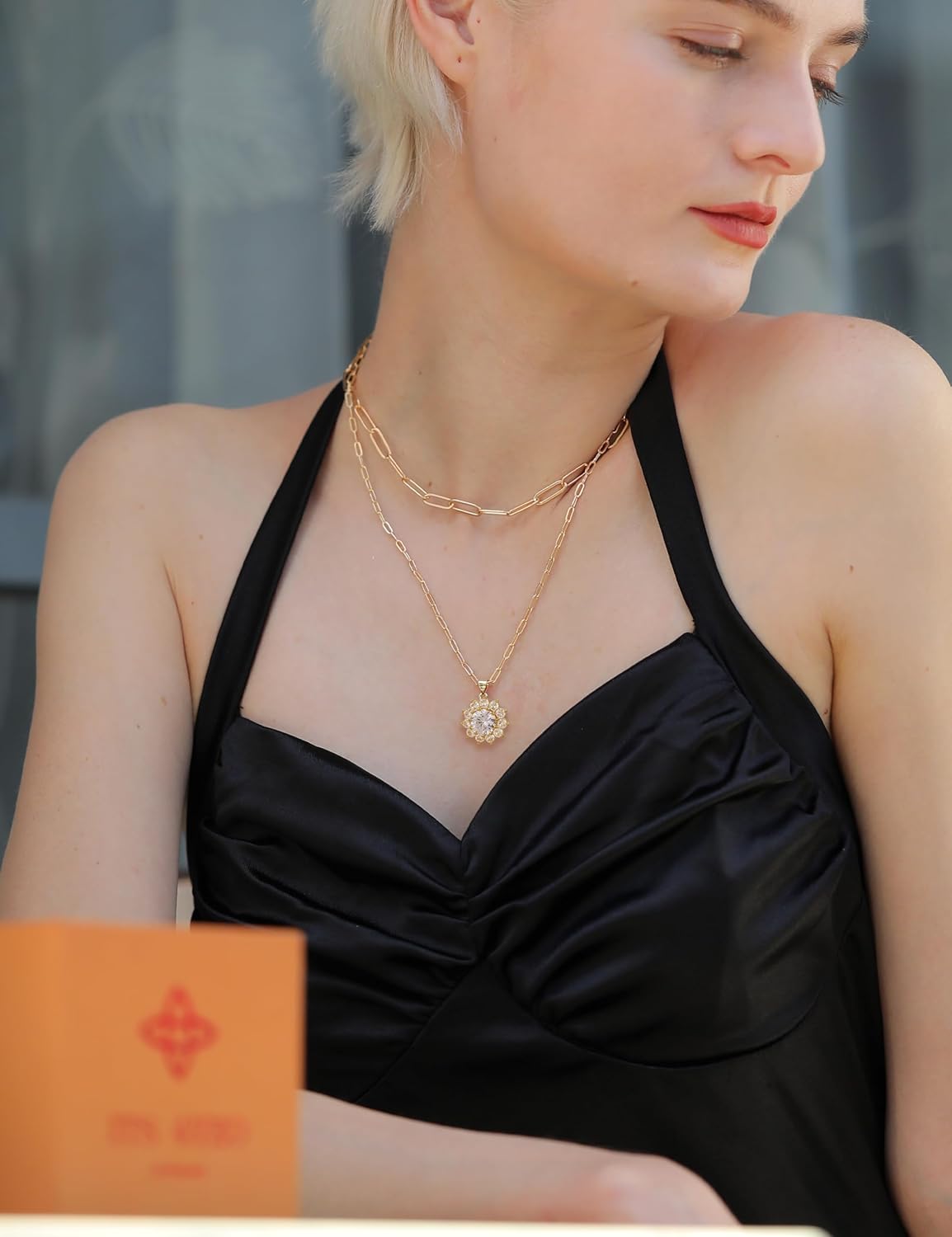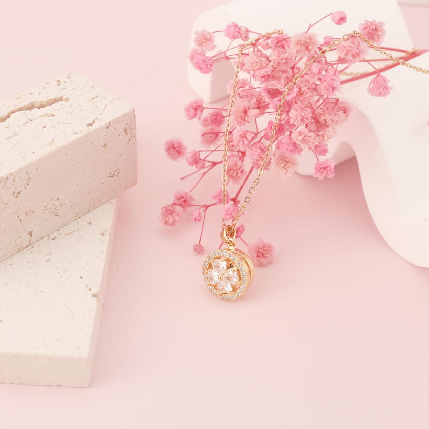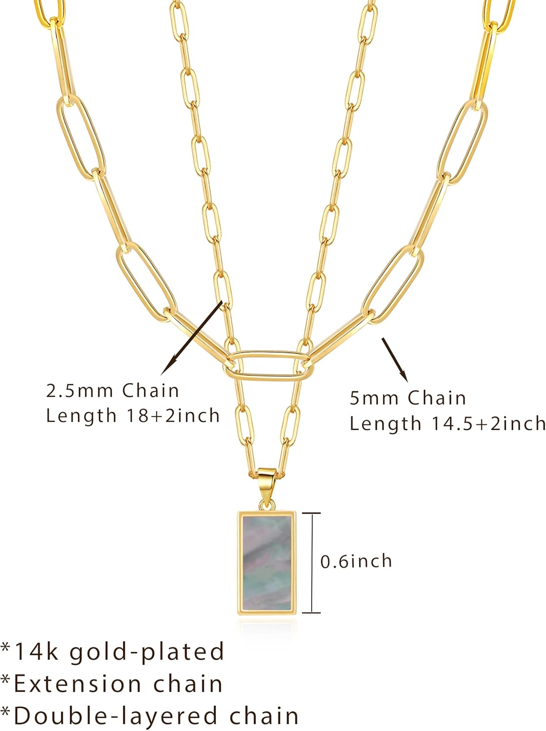 Four Leaf Clover Pendant Necklace Double Layer Chain 14K Gold Plated Birthday Valentine's day Jewelry Gift for Women Wife