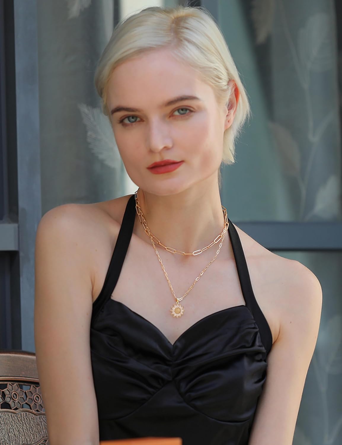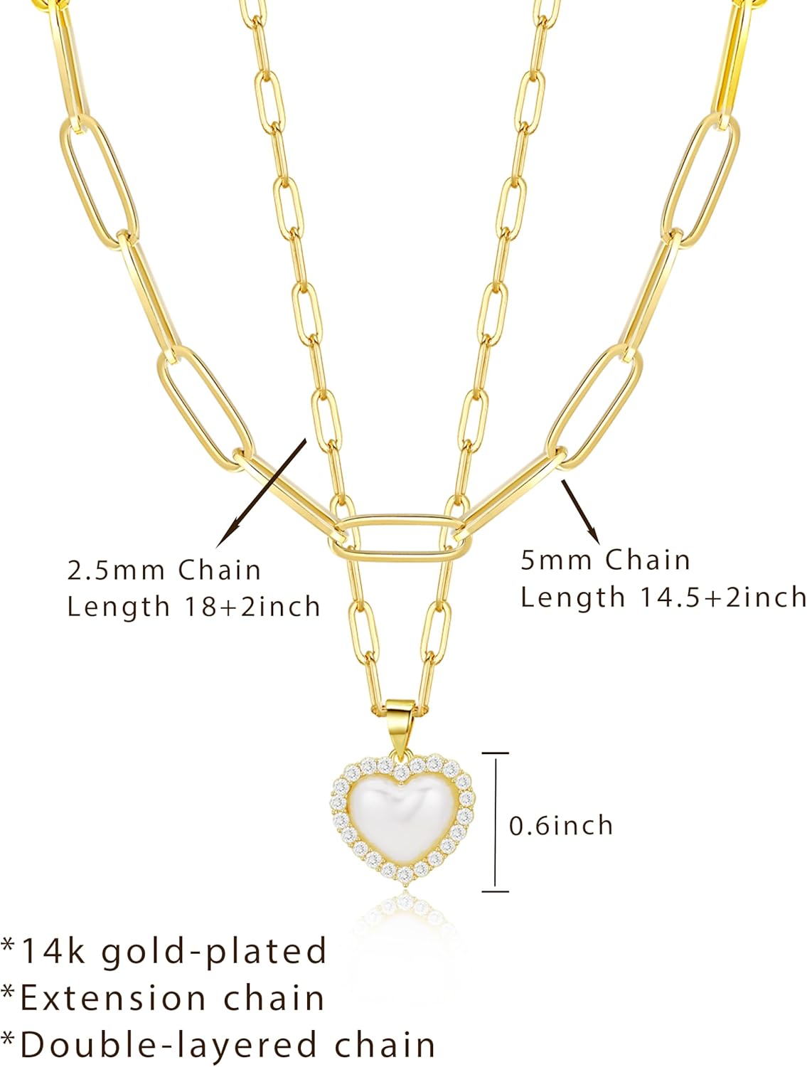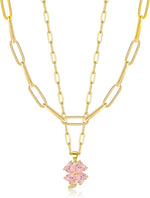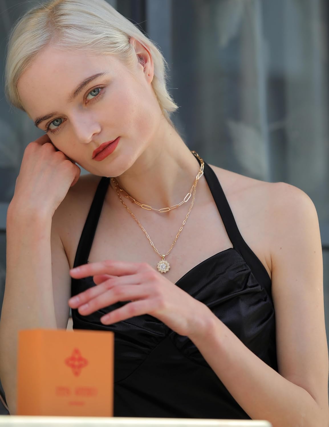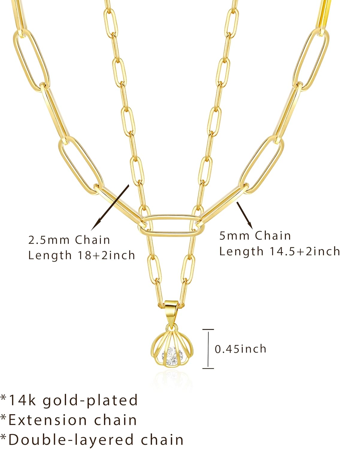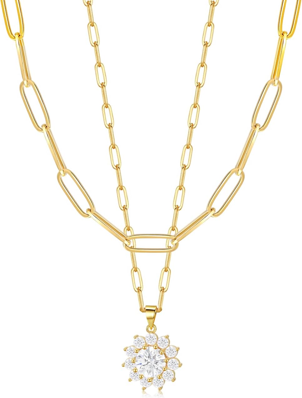 Four Leaf Clover Pendant Necklace Double Layer Chain 14K Gold Plated Birthday Valentine's day Jewelry Gift for Women Wife