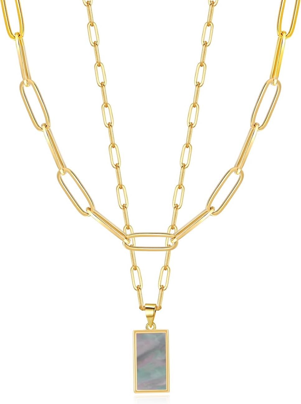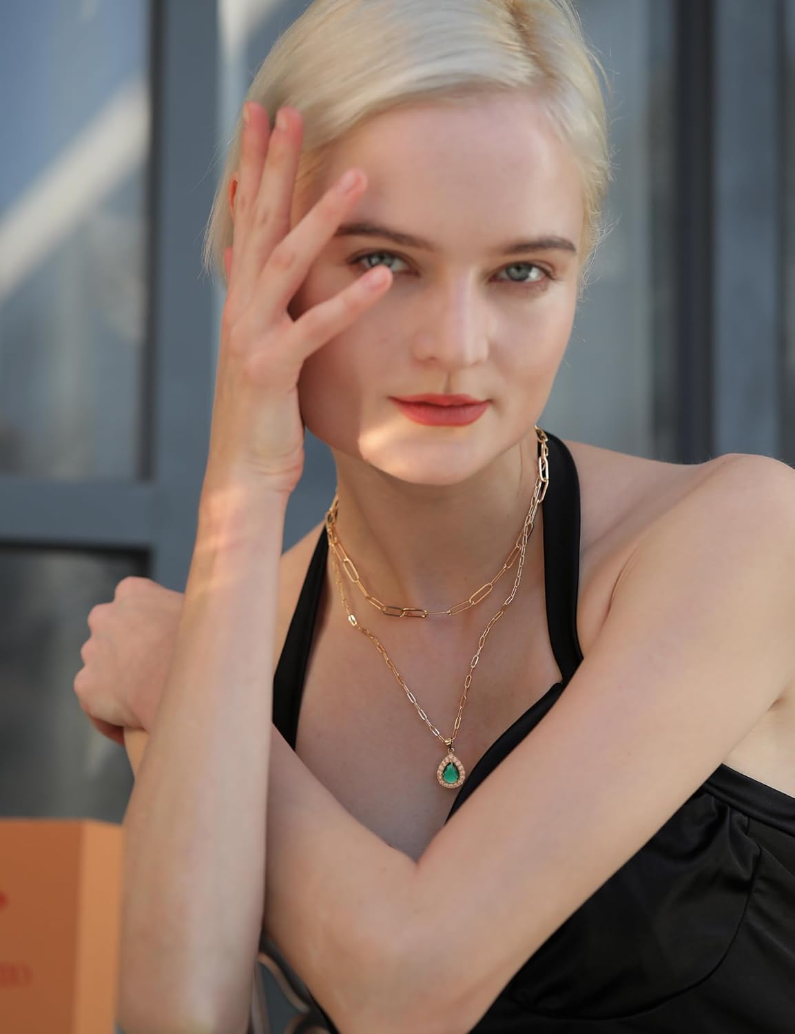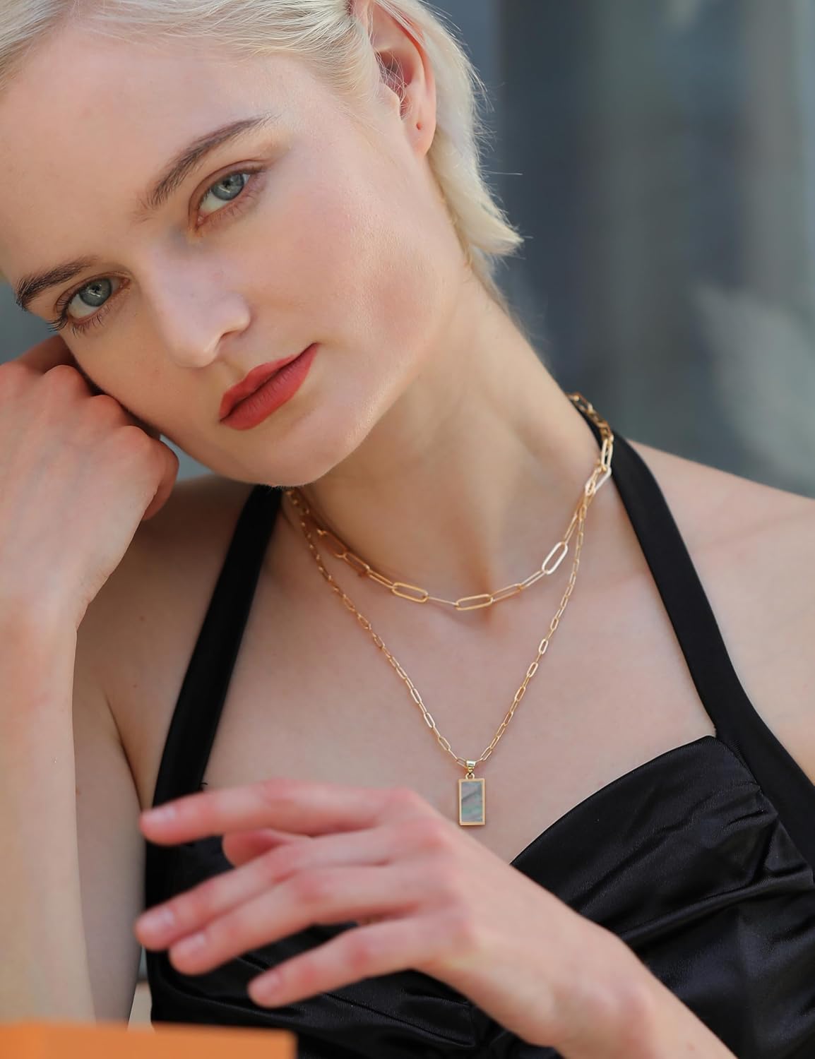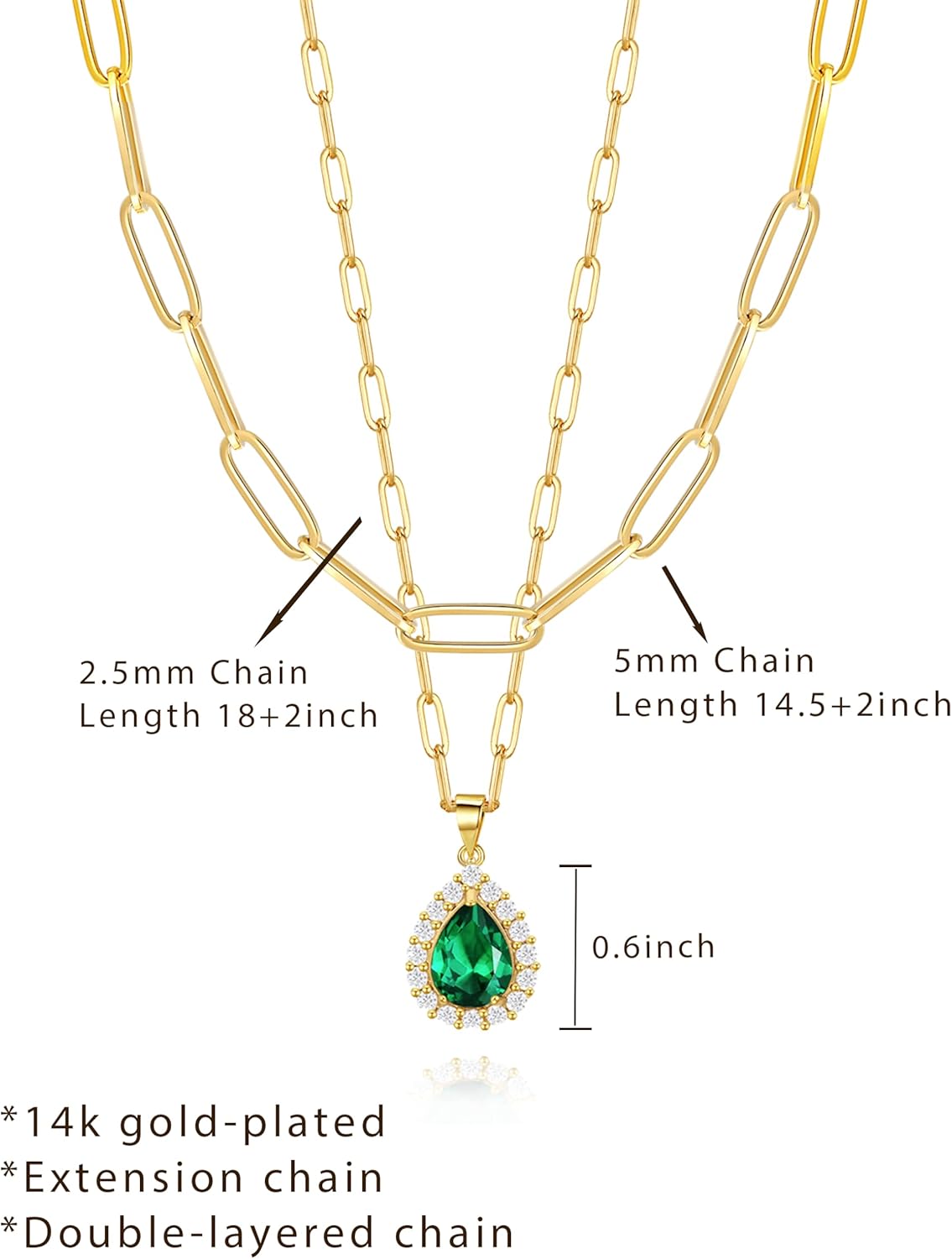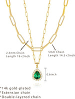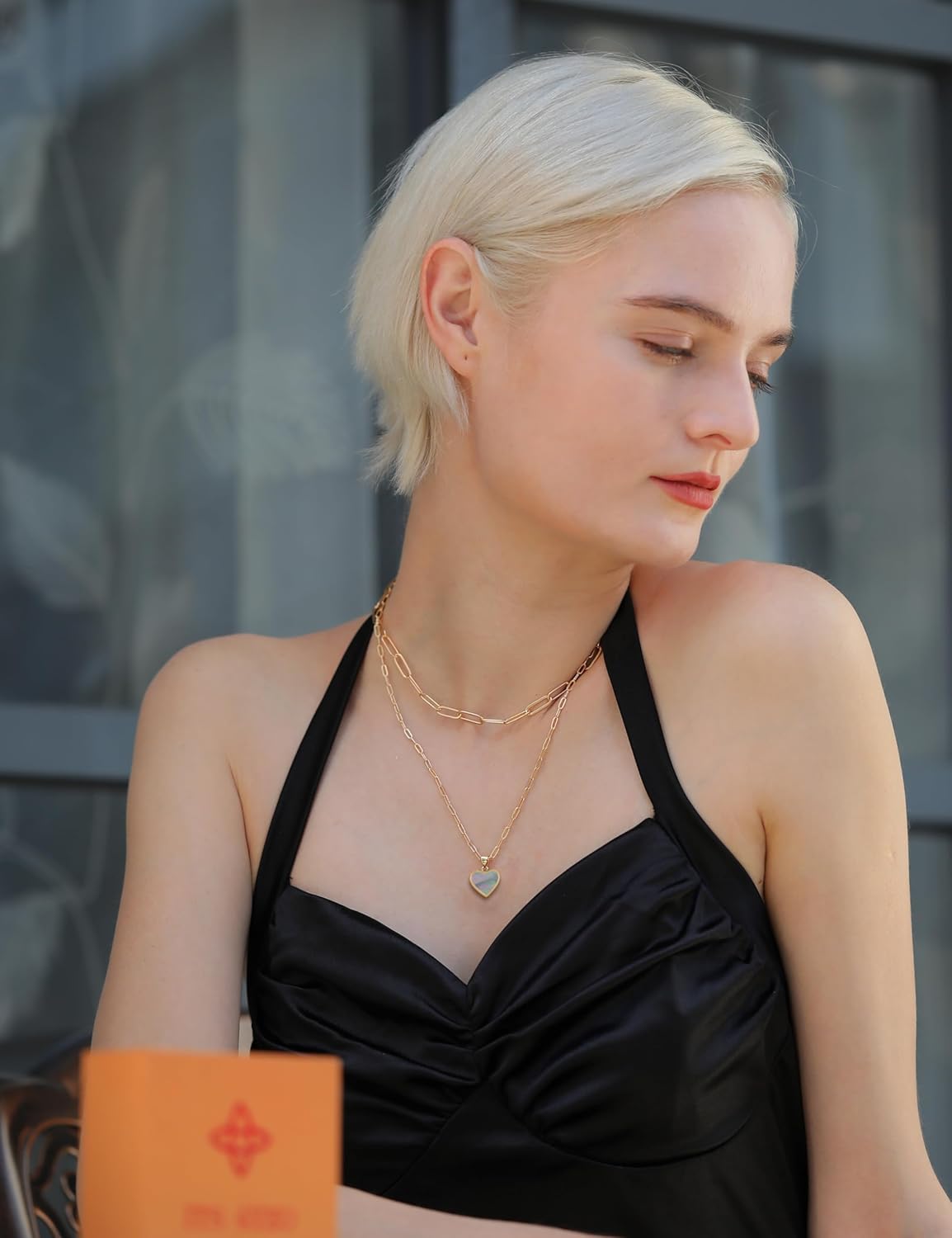 Four Leaf Clover Pendant Necklace Double Layer Chain 14K Gold Plated Birthday Valentine's day Jewelry Gift for Women Wife