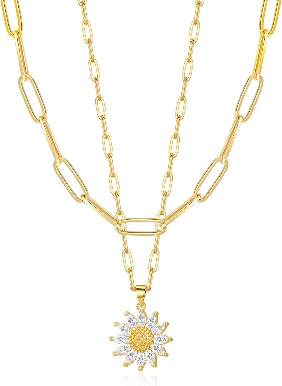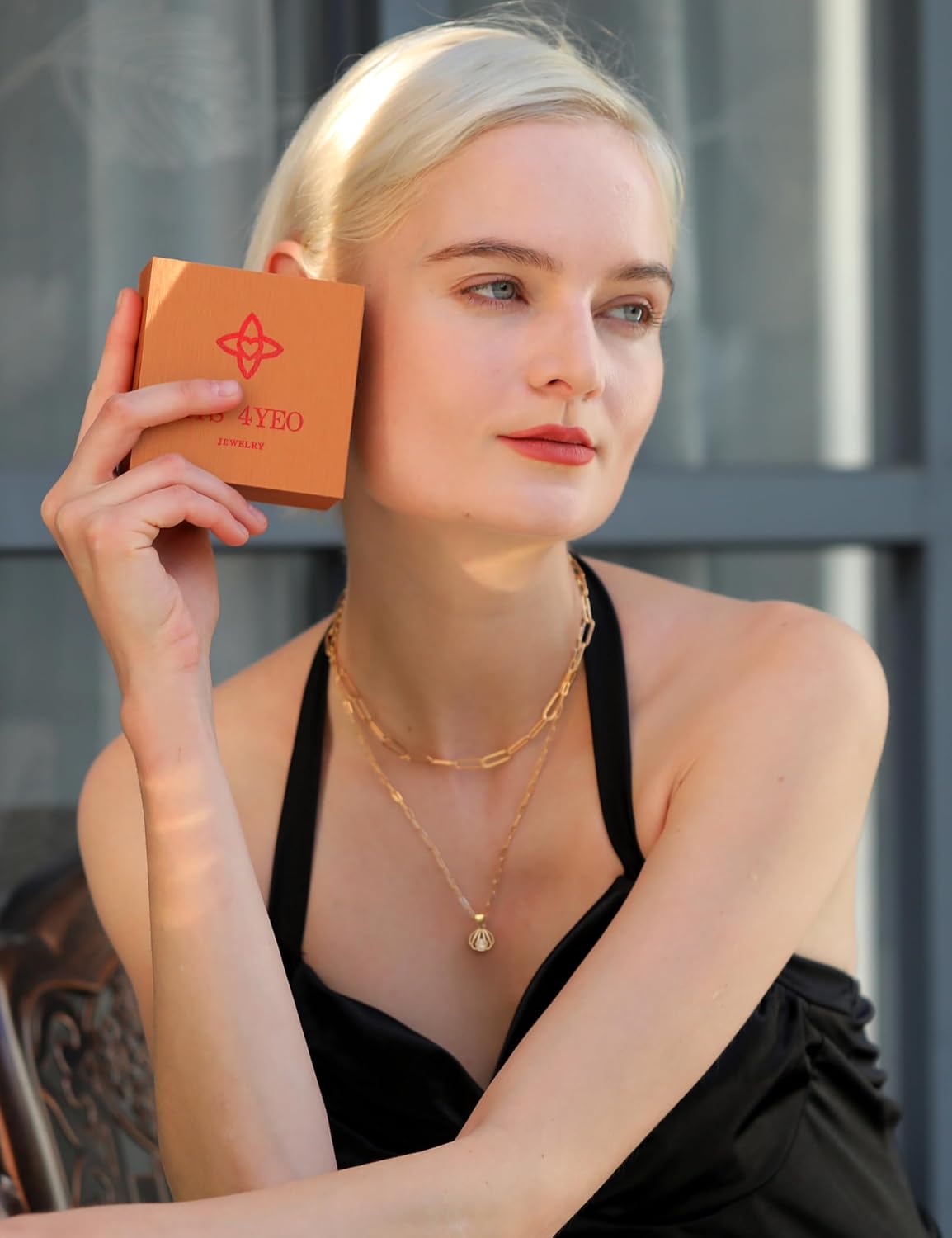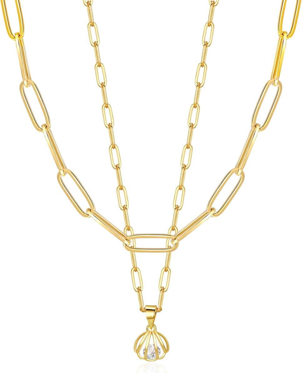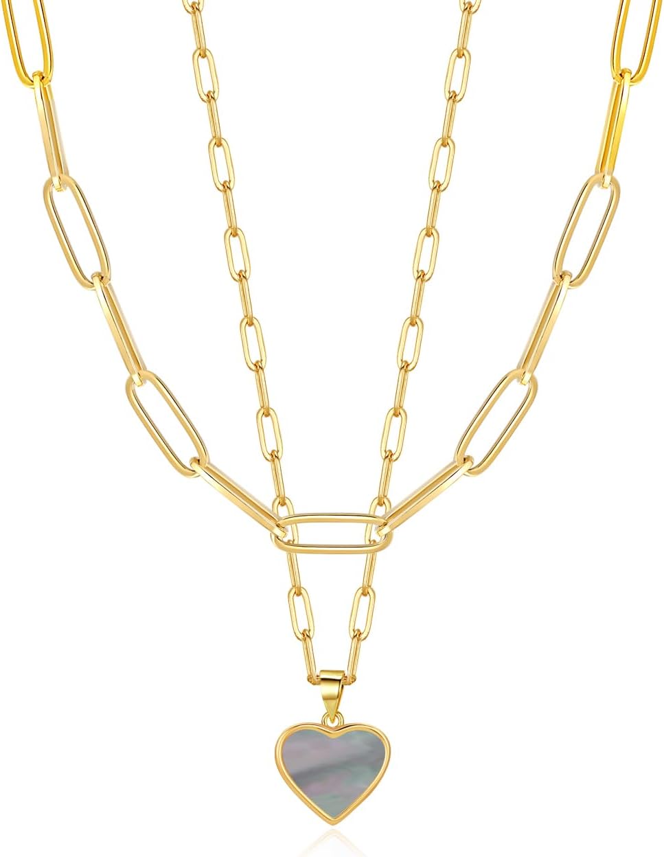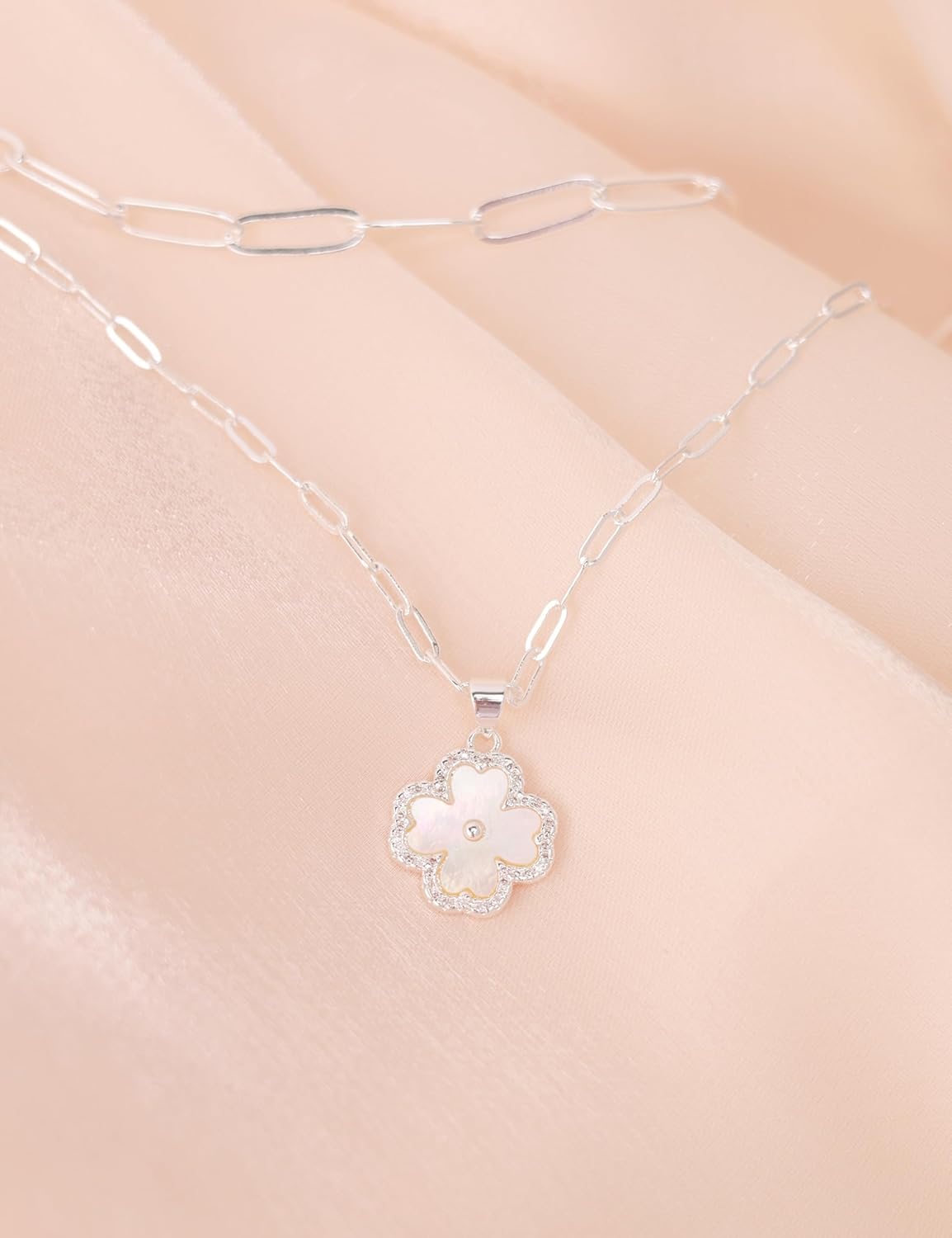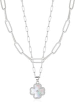 Four Leaf Clover Pendant Necklace Double Layer Chain 14K Gold Plated Birthday Valentine's day Jewelry Gift for Women Wife