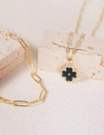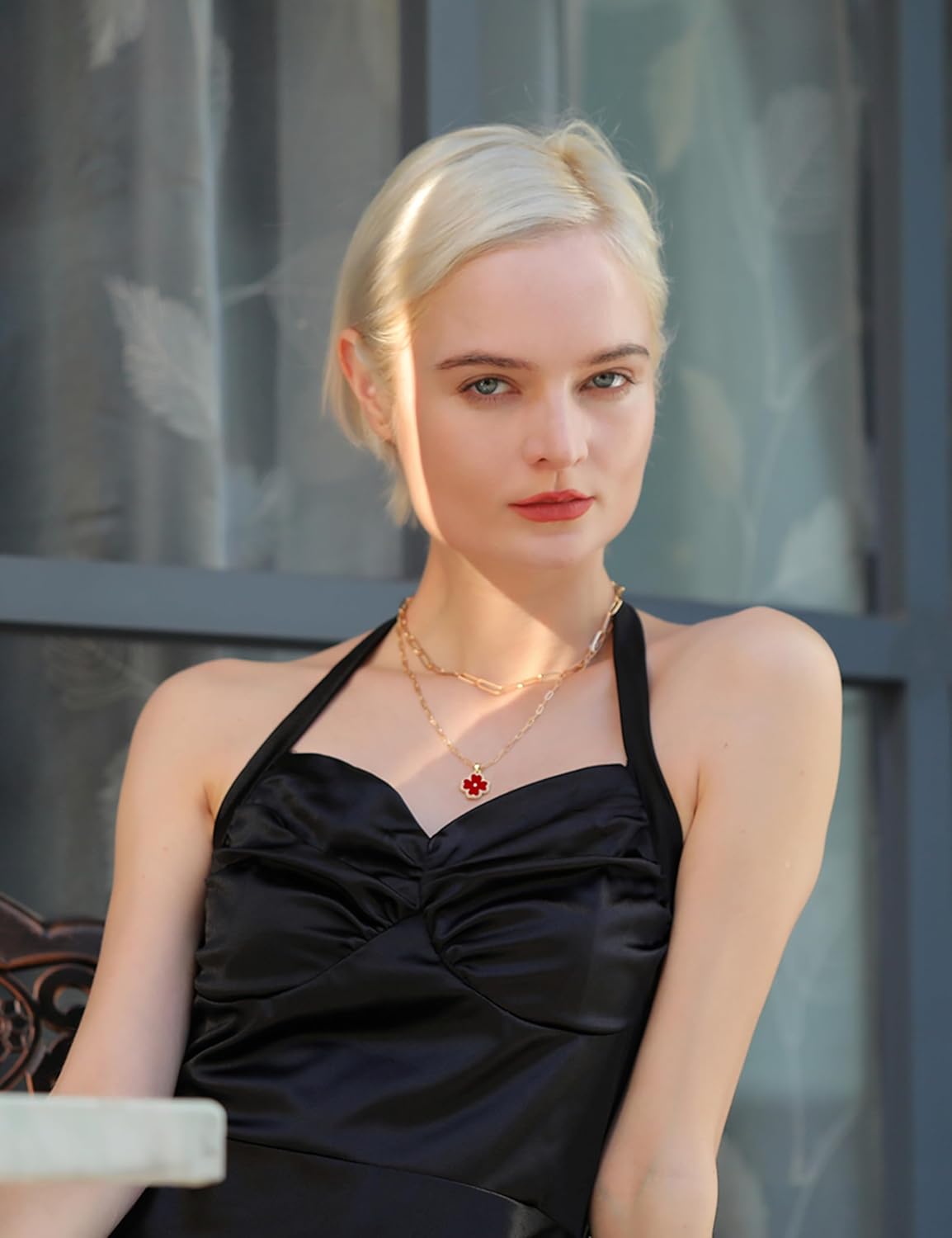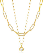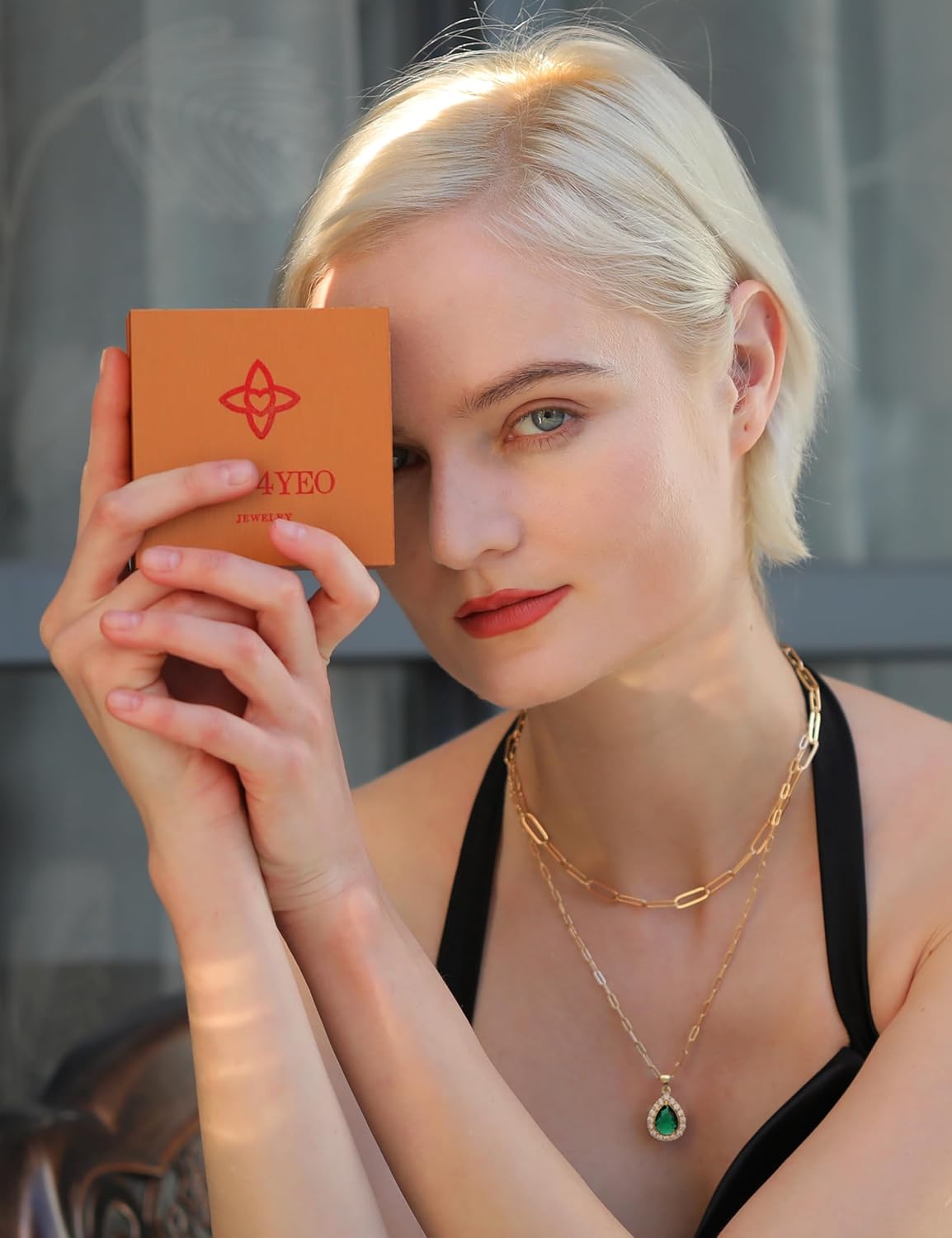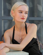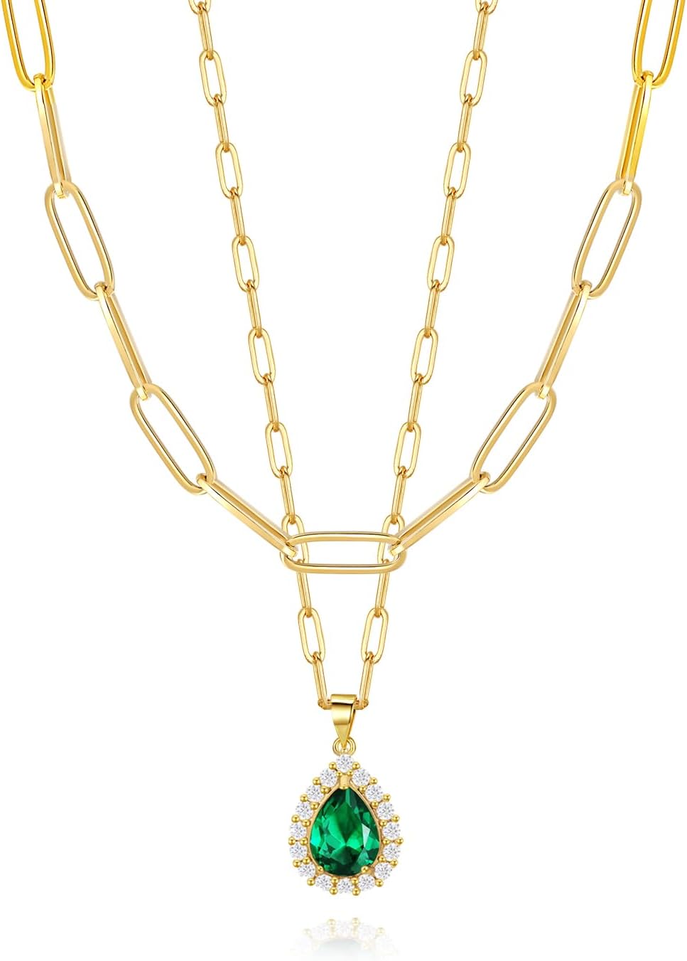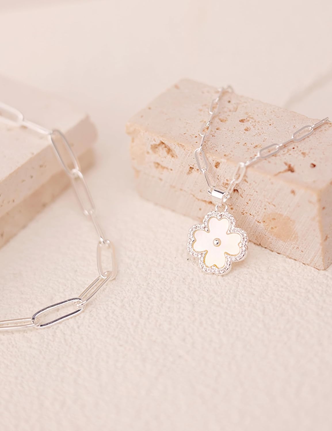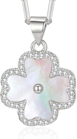 Four Leaf Clover Pendant Necklace Double Layer Chain 14K Gold Plated Birthday Valentine's day Jewelry Gift for Women Wife