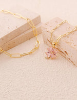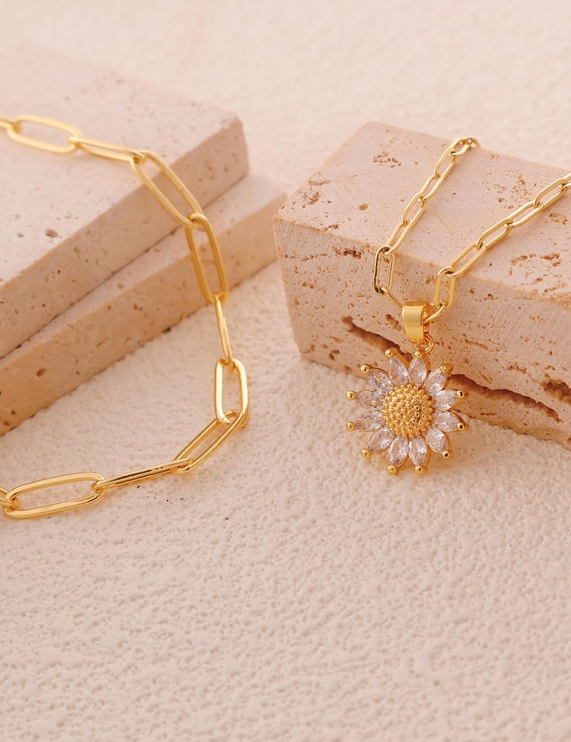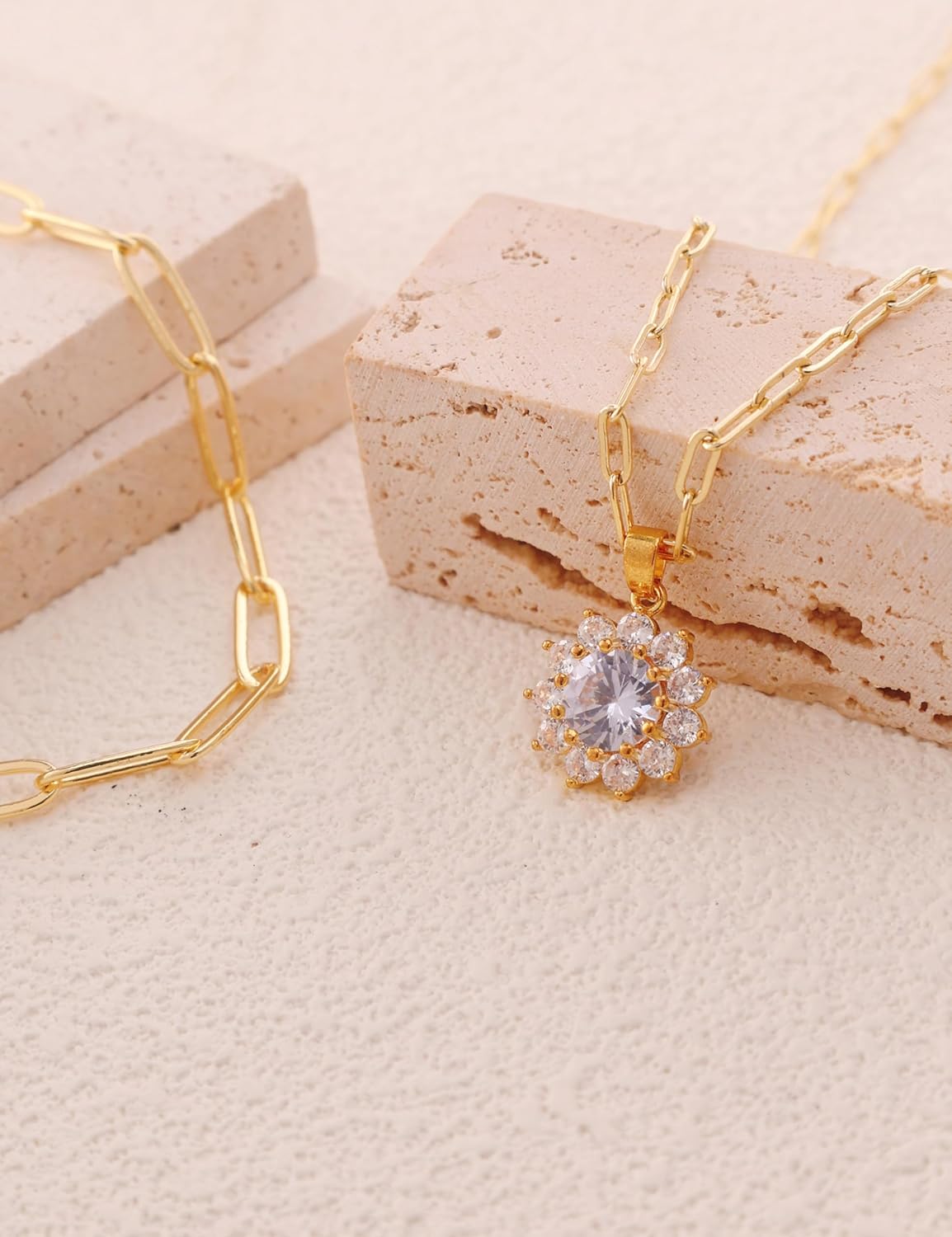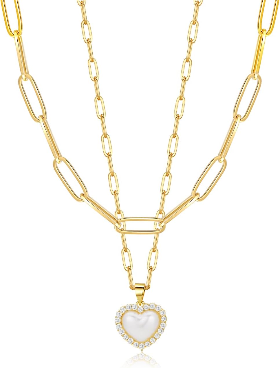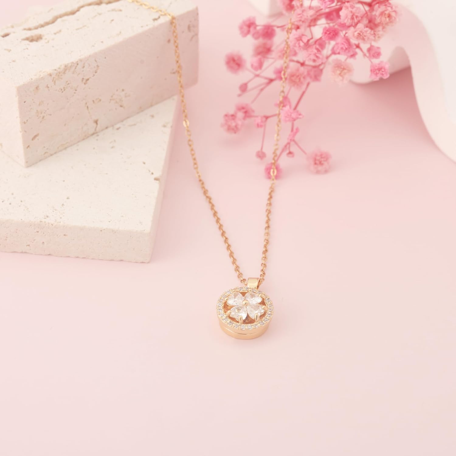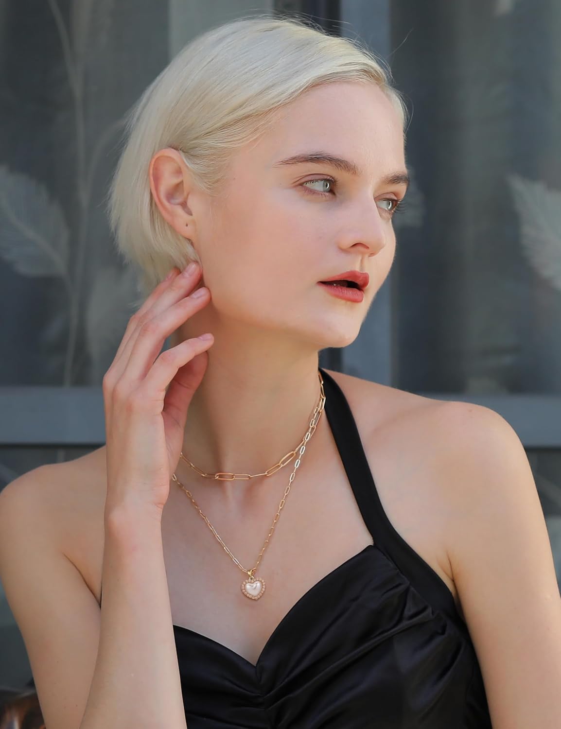Four Leaf Clover Pendant Necklace Double Layer Chain 14K Gold Plated Birthday Valentine's day Jewelry Gift for Women Wife