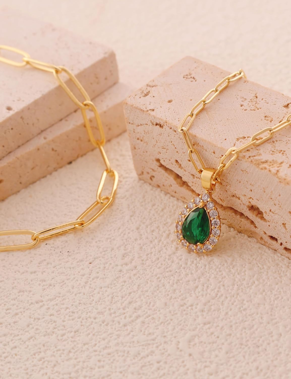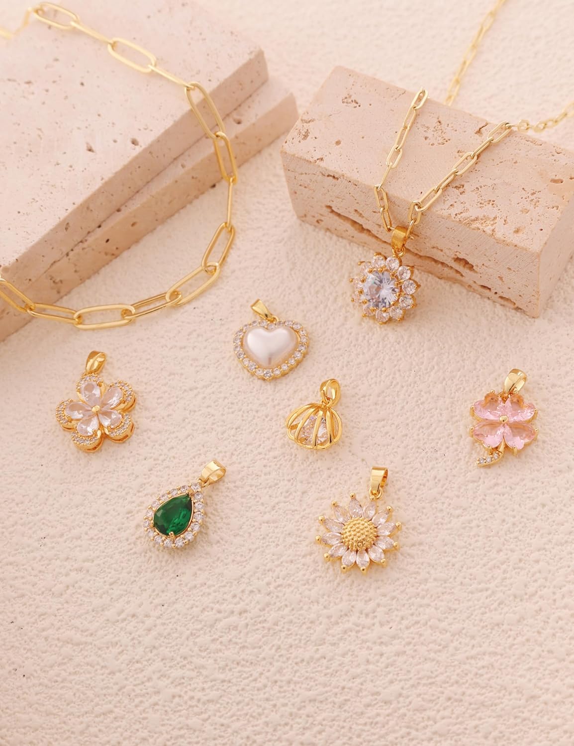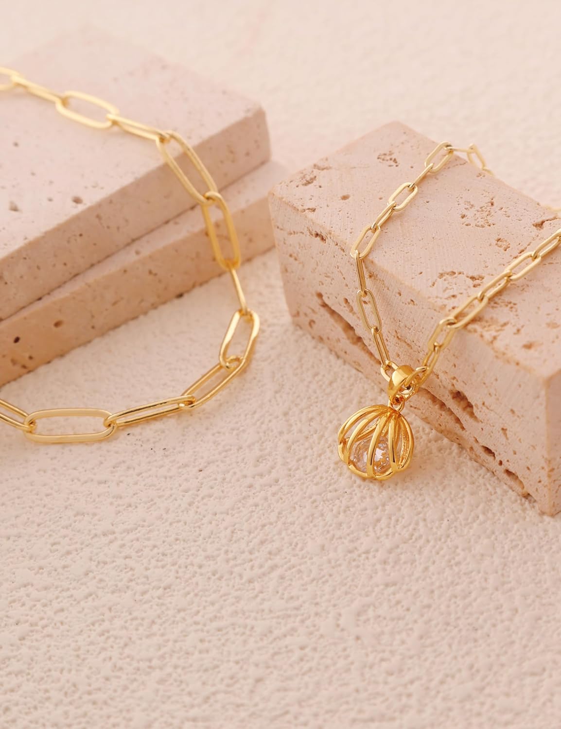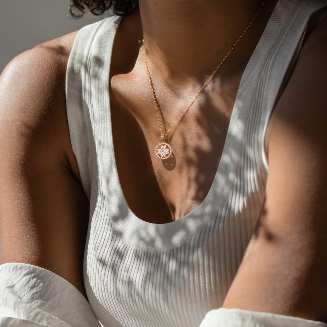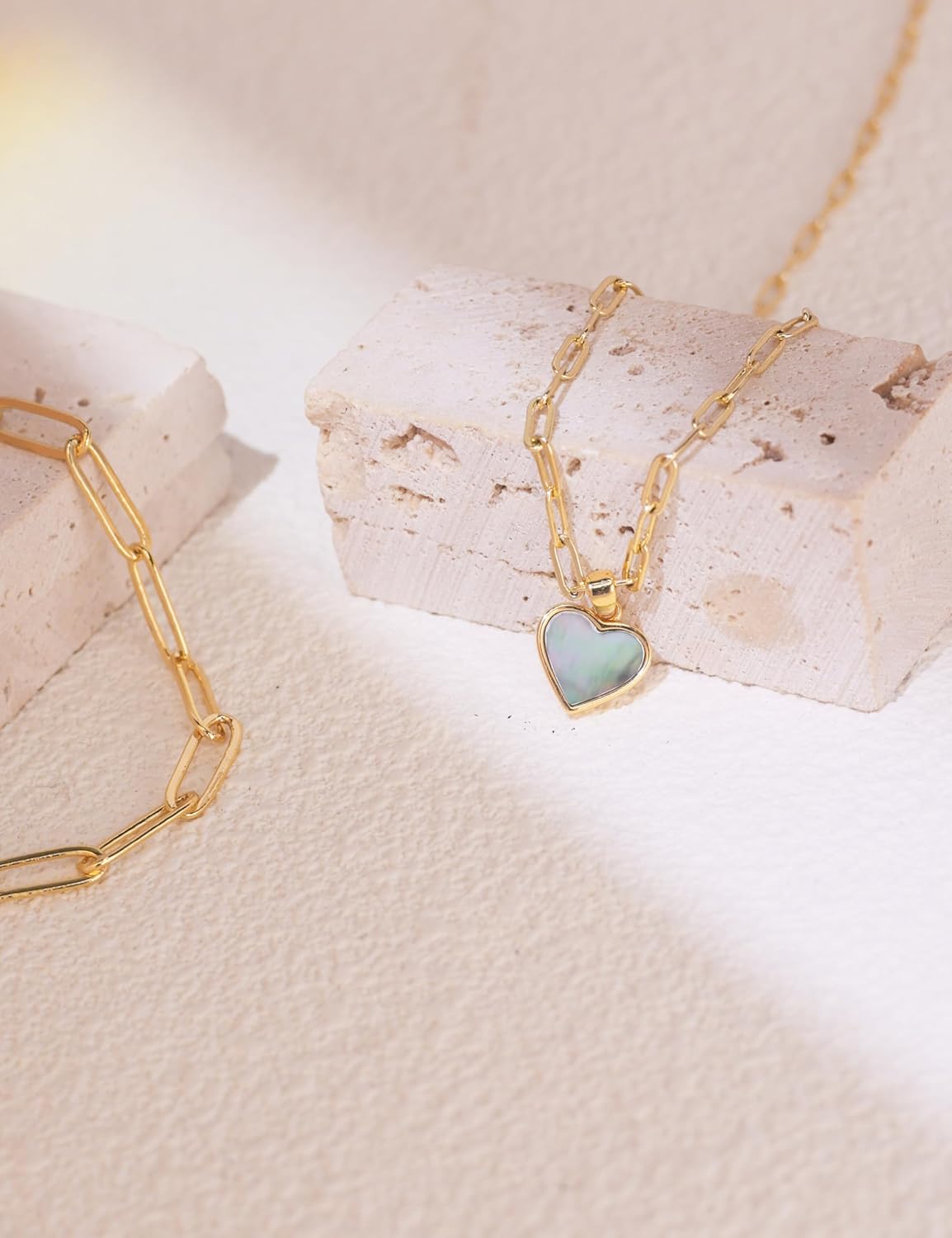 Four Leaf Clover Pendant Necklace Double Layer Chain 14K Gold Plated Birthday Valentine's day Jewelry Gift for Women Wife