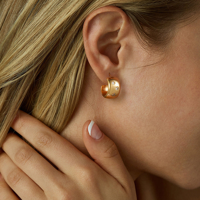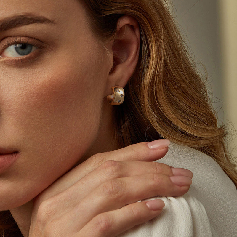 ❤Hoop Earrings: This gold hoops earrings are not only sleek and modern, but also classic and elegant style. Great gold earrings jewelry for everyday wear and matching, it catches the light beautifully.