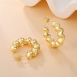 Ladies' Ring Earrings: This heavy goldenen earring looks like waves on the front and beads on the side. High-quality design endows this earring with unique elegance and charm.