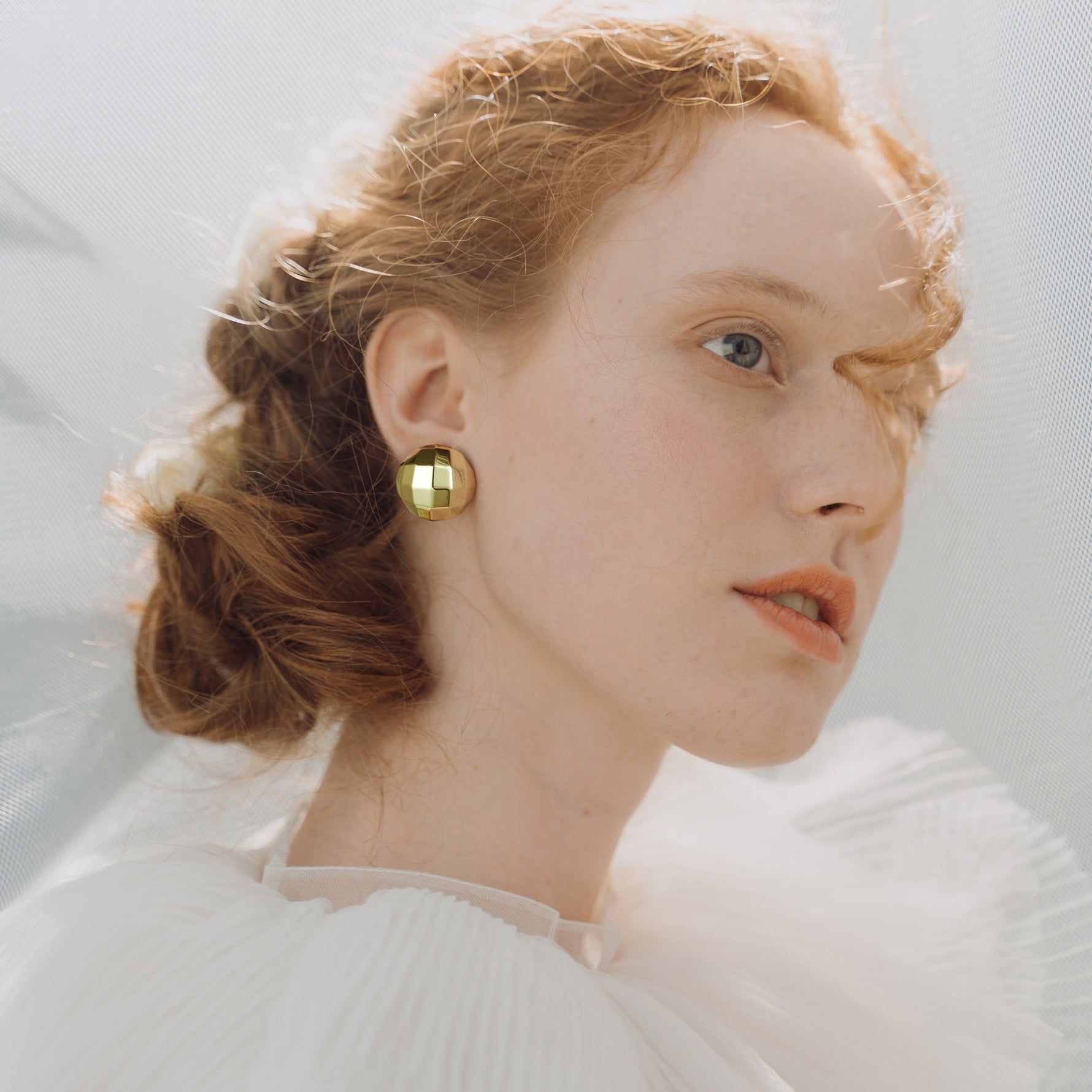 Thick goldenen  earrings: This goldenen  earring combines the flashing luster with the heavy appearance, giving people a unique aesthetic feeling. The design of the large hemisphere keeps it heavy, while the hollow design gives people a light wearing experience.