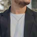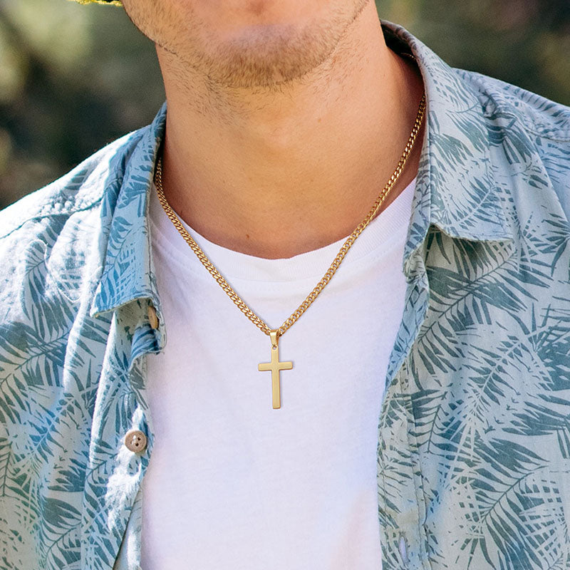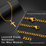 LUXEJEW Cross Necklace for Men, Silver Black Gold Stainless Steel Cuban Chain Cross Pendant Necklace for Men