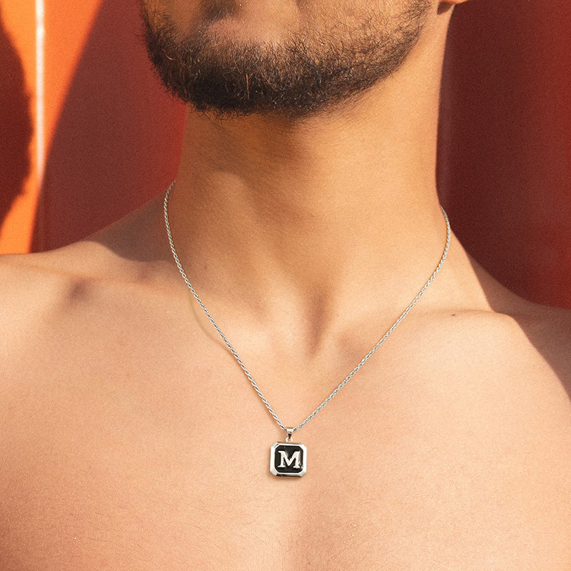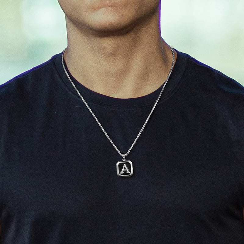 UNIQUE SILVER MENS NECKLACE: Unique silver chain mens initial necklace, can wear with the simple mens necklace or layered with other chain. Will be get a different style, or you can also wear with the rope chain simply or layering with other pendant, will get a classic feeling.