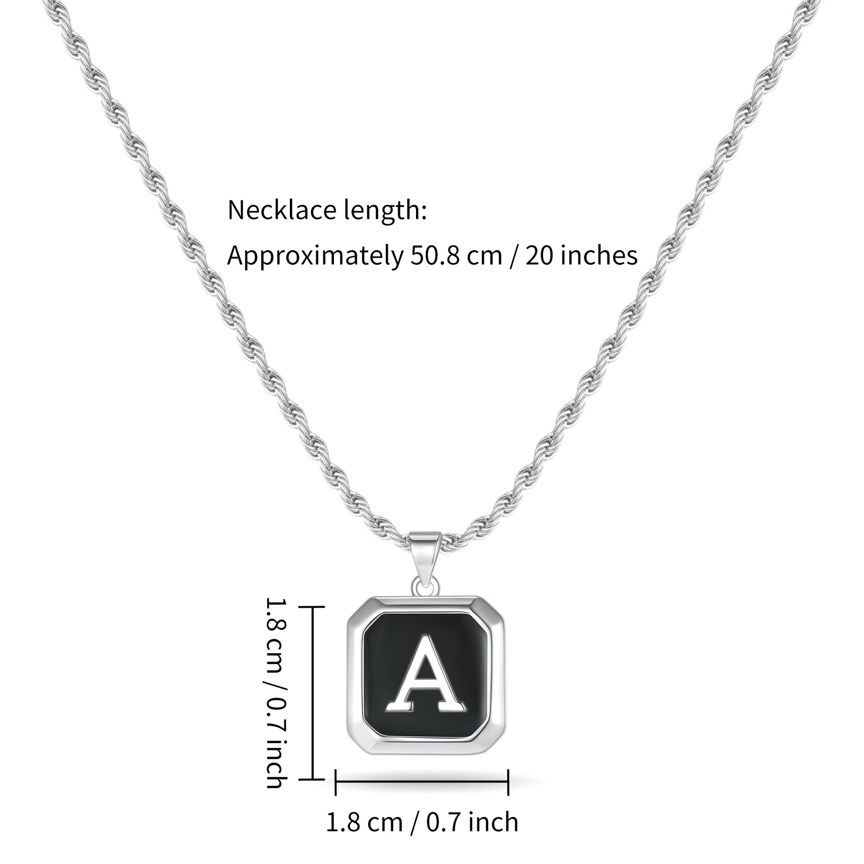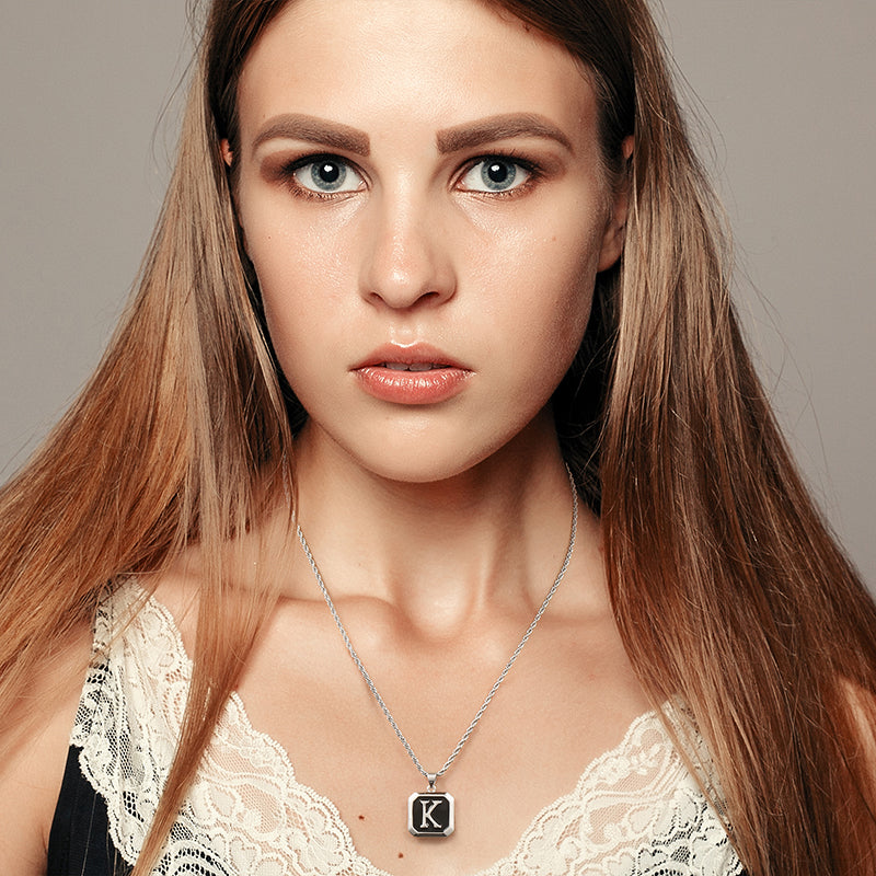 CLASSIC INITIAL PENDANT NECKLACE: 20" Rope chain with silver initial pendant necklace, classic women mens initial necklace, perfect length and size to fit any occasions. Silver mens chain necklace makes it different from others, a unique women mens accessories add to jewelry collection.