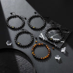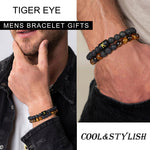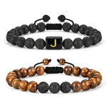 LUXEJEW Natural Stone Initial Bracelets for Men - 8mm Tiger Eye | Matte Agate | Lava Rock Bracelets Mens Bracelets Beads