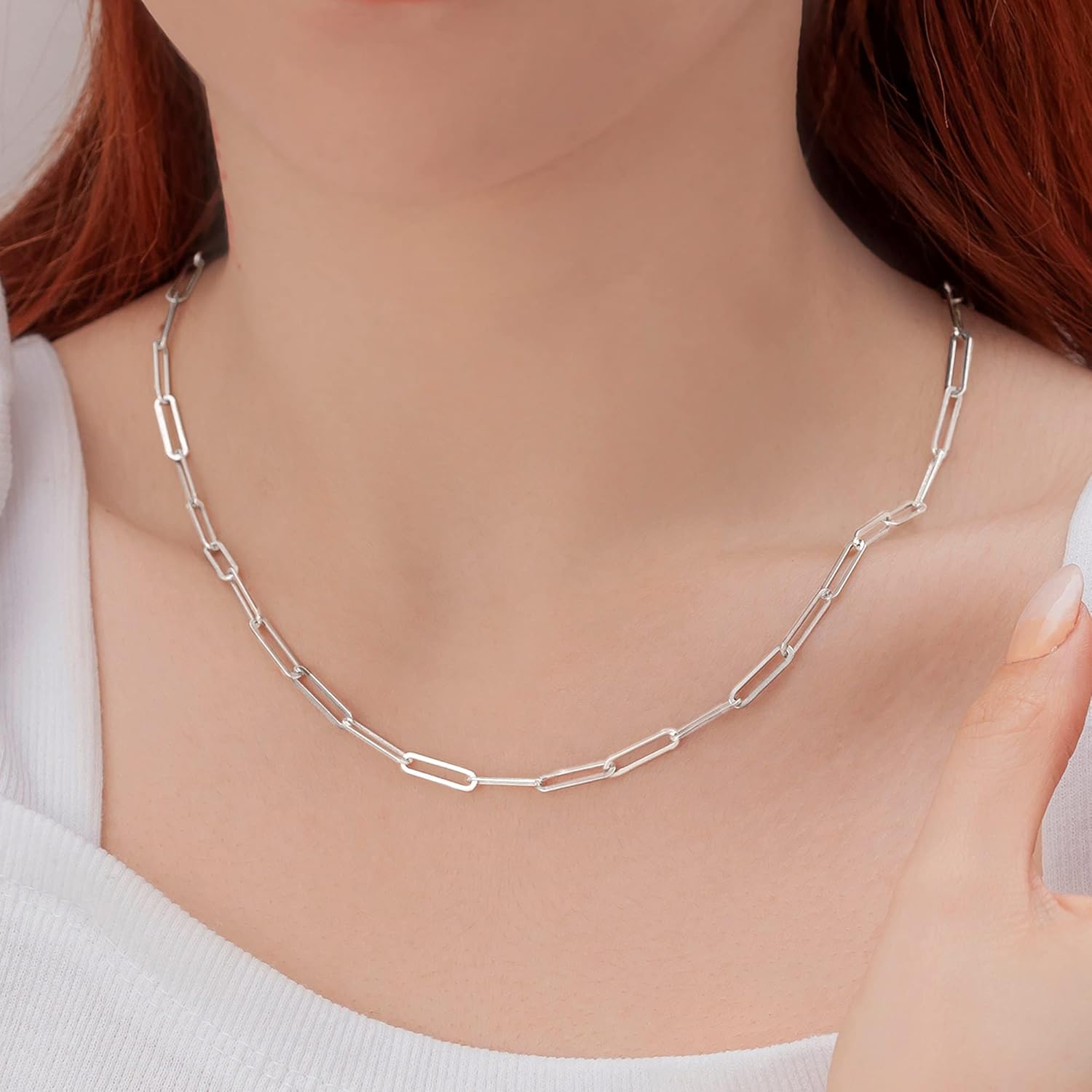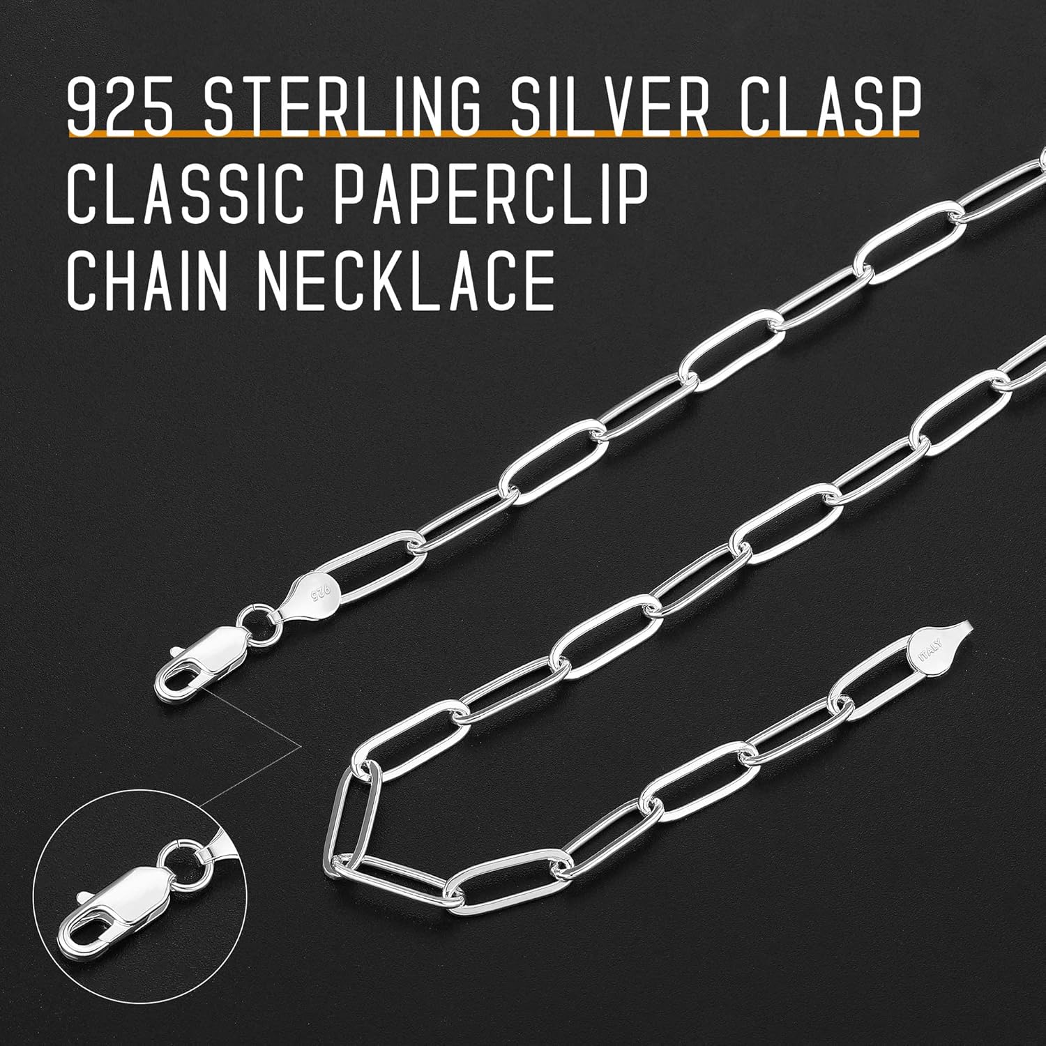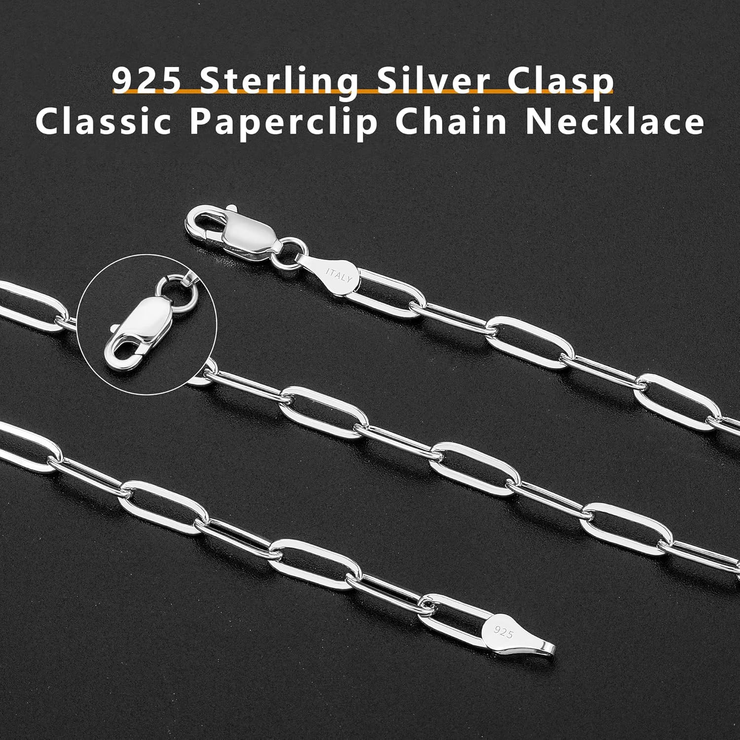 OCHCOH 925 Sterling Silver Clasp 2.5/3/4/5mm Paperclip Chain for Women Silver Chain Necklace 16, 18, 20, 22, 24, 26, 30 Inches