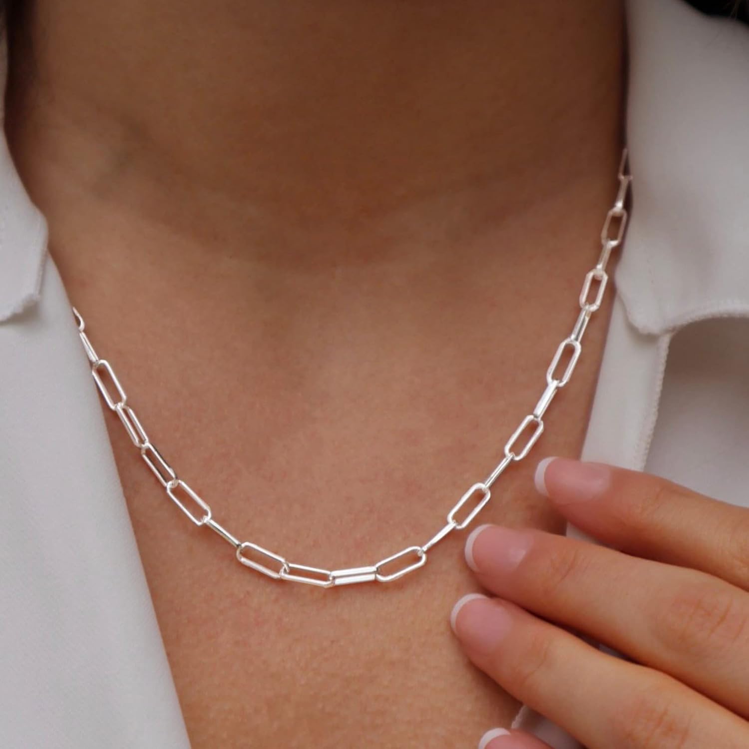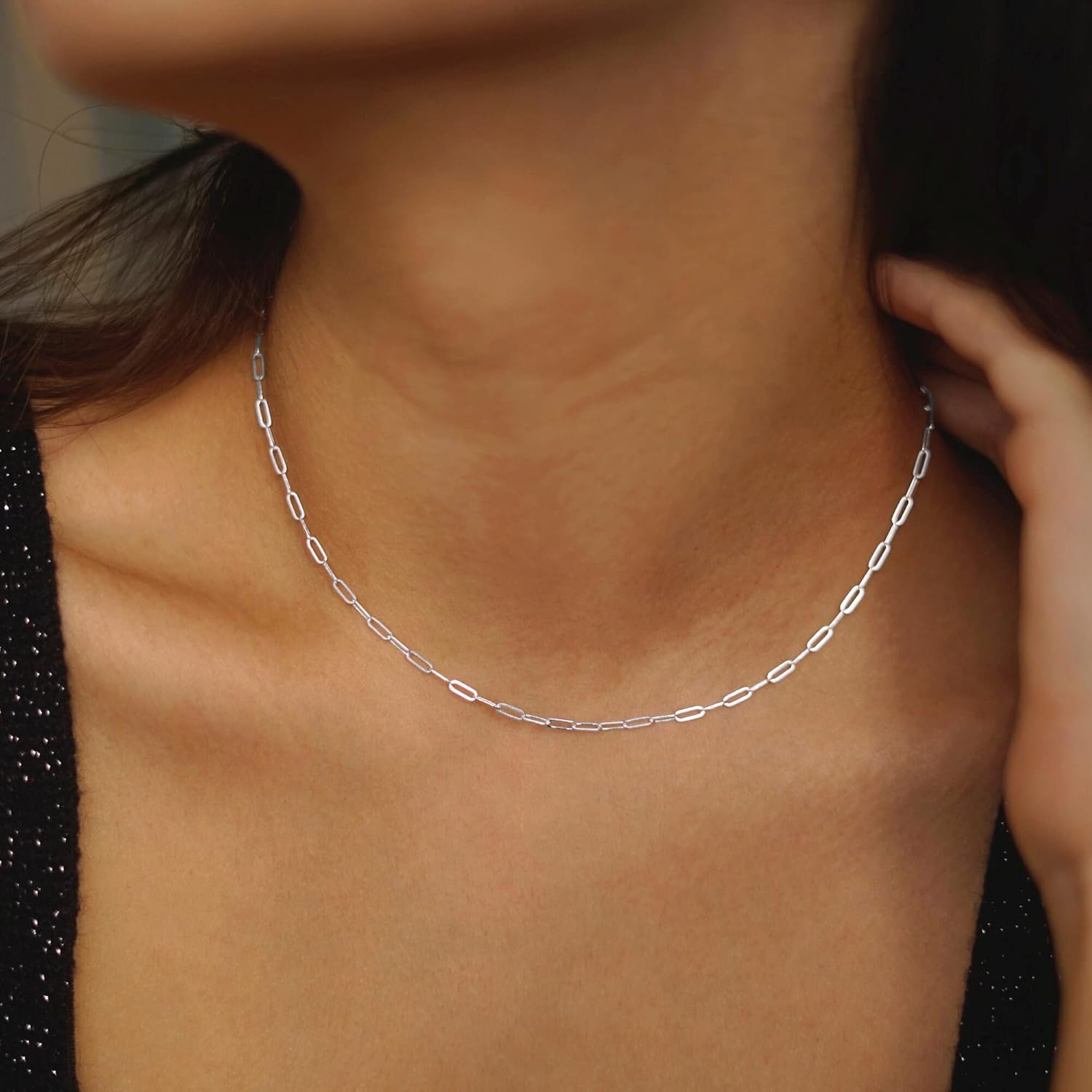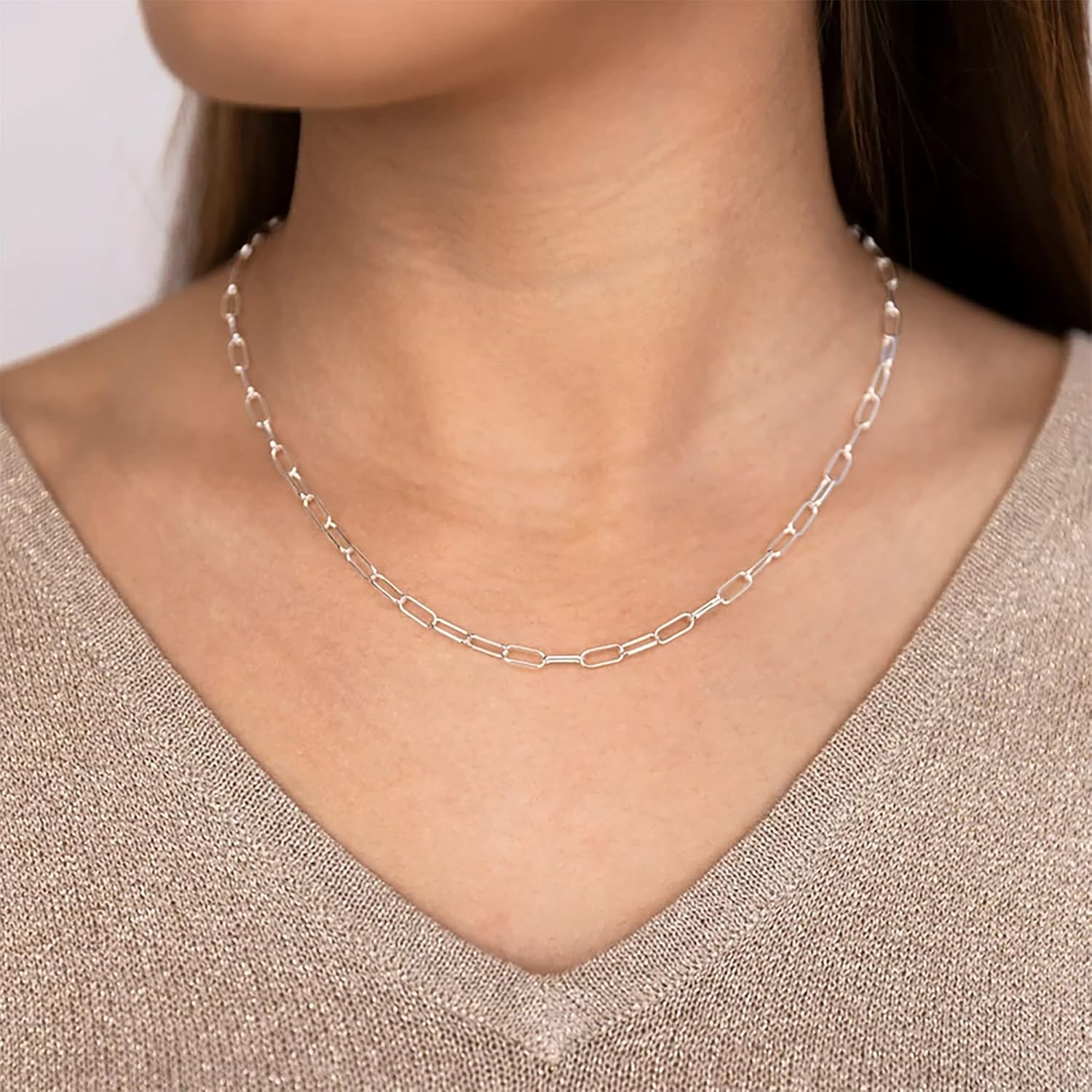 OCHCOH 925 Sterling Silver Clasp 2.5/3/4/5mm Paperclip Chain for Women Silver Chain Necklace 16, 18, 20, 22, 24, 26, 30 Inches