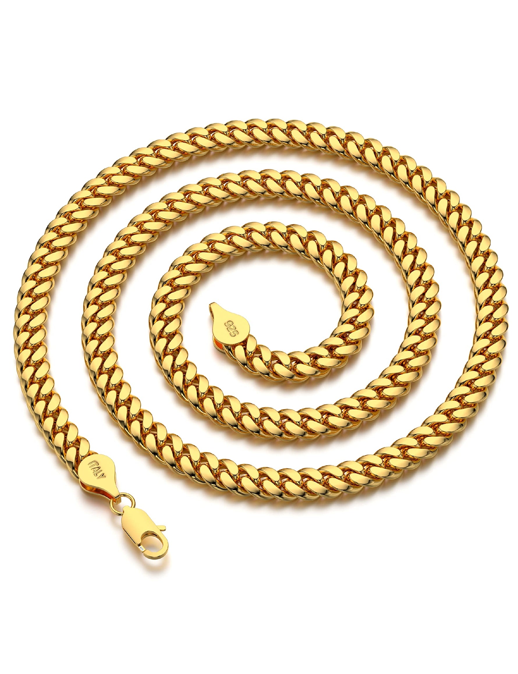 【Stylish Classic Cuban Chain】-Solid 925 sterling silver lobster clasp, simple, quick and easy to open and close. The body is plated with extra thick 18K Gold Plated, the Cuban Chain is one of the most popular fashion chain necklaces. Wear it alone with casual or formal wear for a modern elegance, or as a layered chain for a personal touch.