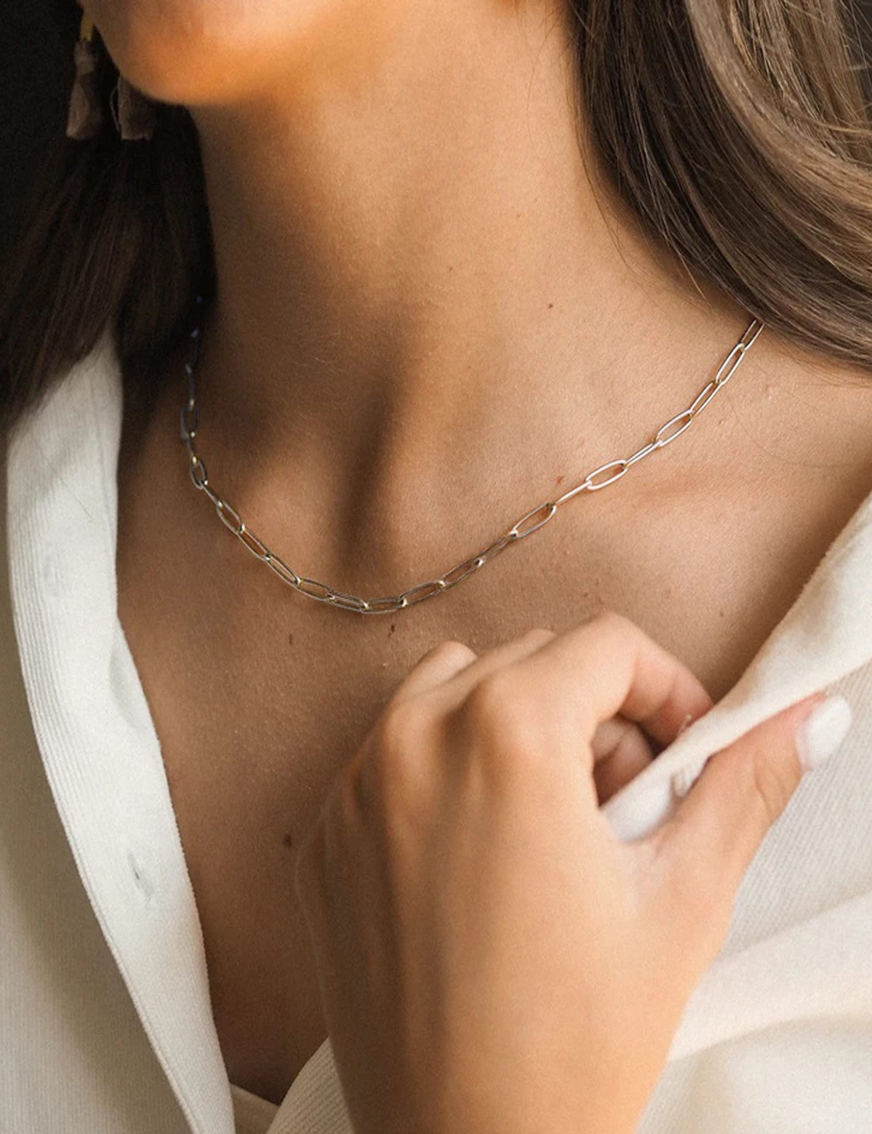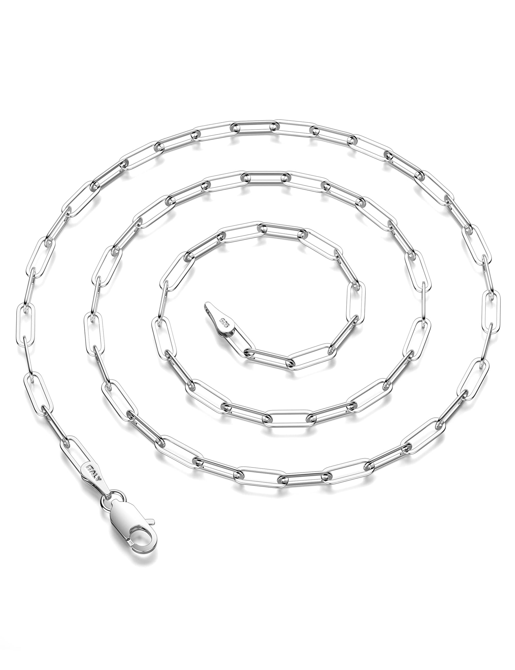 Waitsoul 925 Sterling Silver Paperclip Lobster Clasp Chain 3mm 4mm 5mm 6mm 7mm Necklace for Women Men Diamond Cut Silver Necklace Chain 16-30 Inches