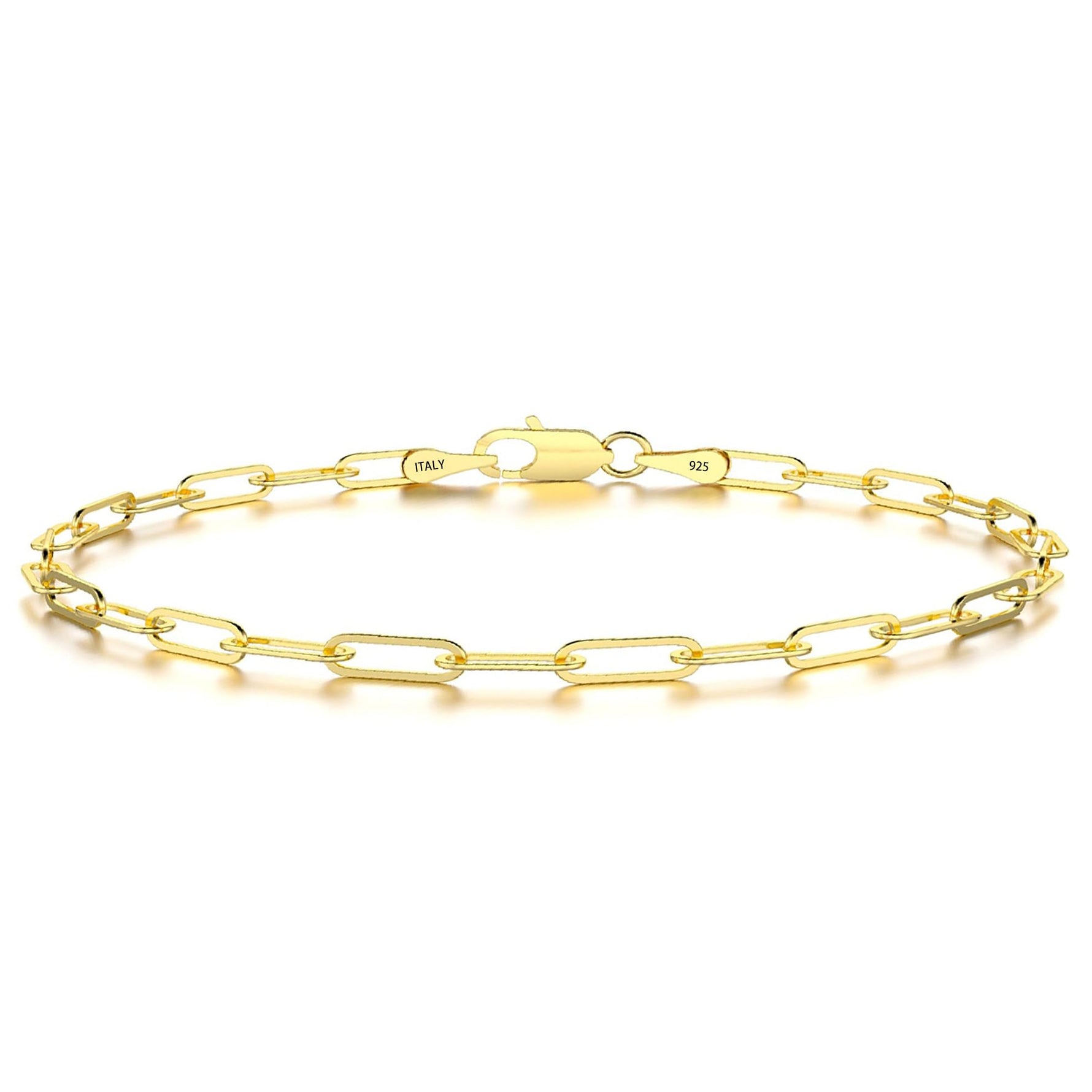 Modern Elegance 14K Gold Bracelet -The Paperclip chain bracelet is plated with extra thick 14K real gold. Hypoallergenic, nickel and lead free, safe to wear and suitable for sensitive skin. Solid 925 sterling silver lobster clasp, low-key yet luxurious, highly polished, strong, durable. Diamond-cut beveled links are much more reflective, more perfect shine.