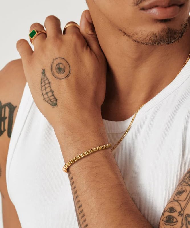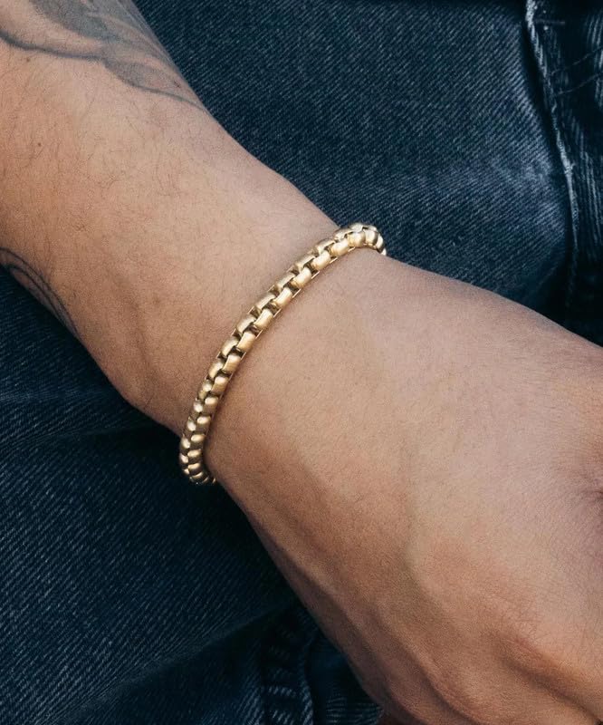 Charm Bracelet for men women - Box gold bracelet strong and durable for daily wear yet, both casual and formal outfits, wear it solo for an everyday polished look or stack with other bracelets for a cool fashion statement, display personal charm.