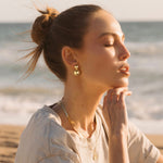 Women's golden pendant earrings Double pearl earrings Women's fashion retro spherical earrings Thick golden earrings Women's jewelry gifts